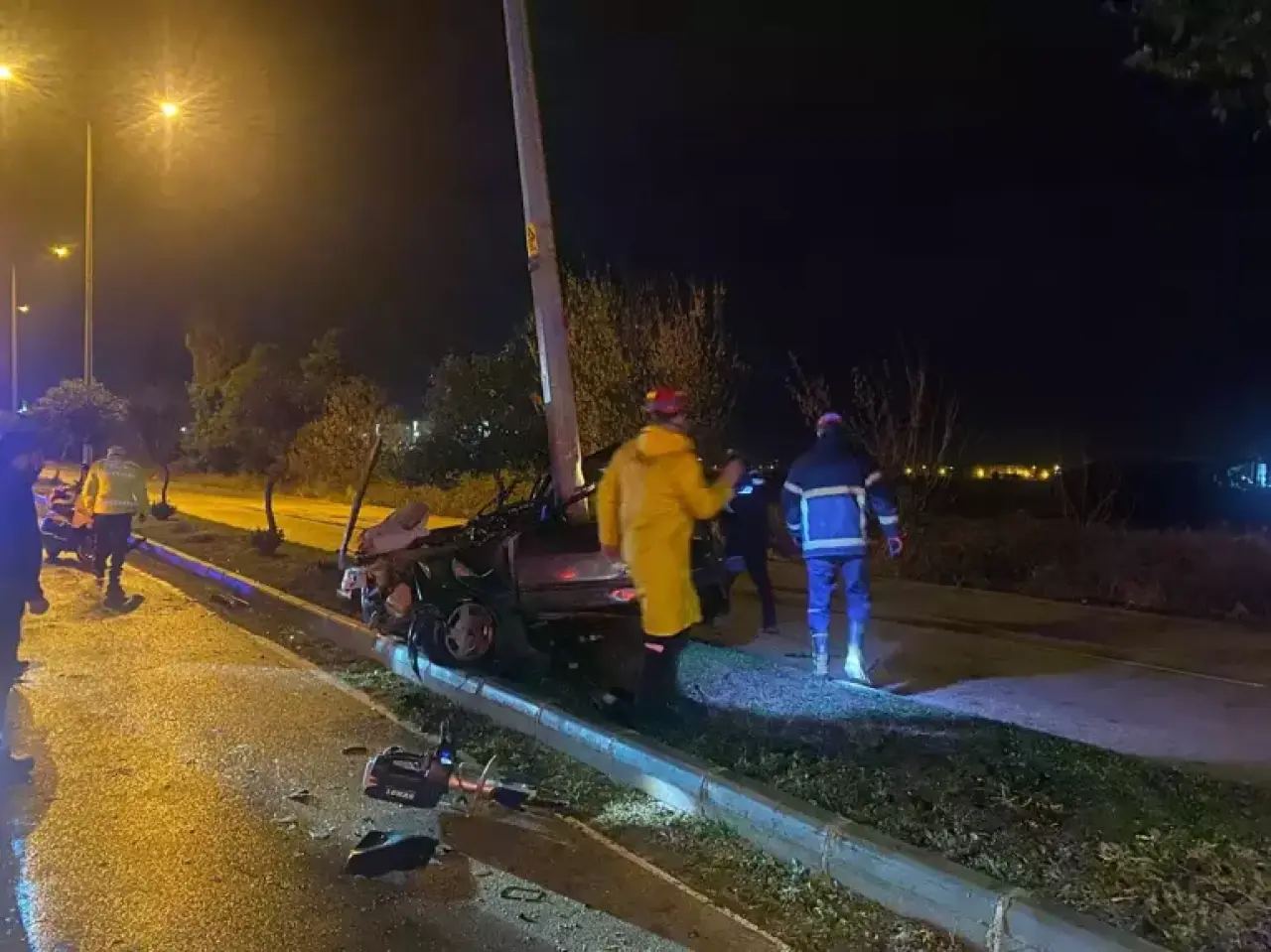 Otomobil Aydınlatma Direğine Çarparak İkiye Bölündü