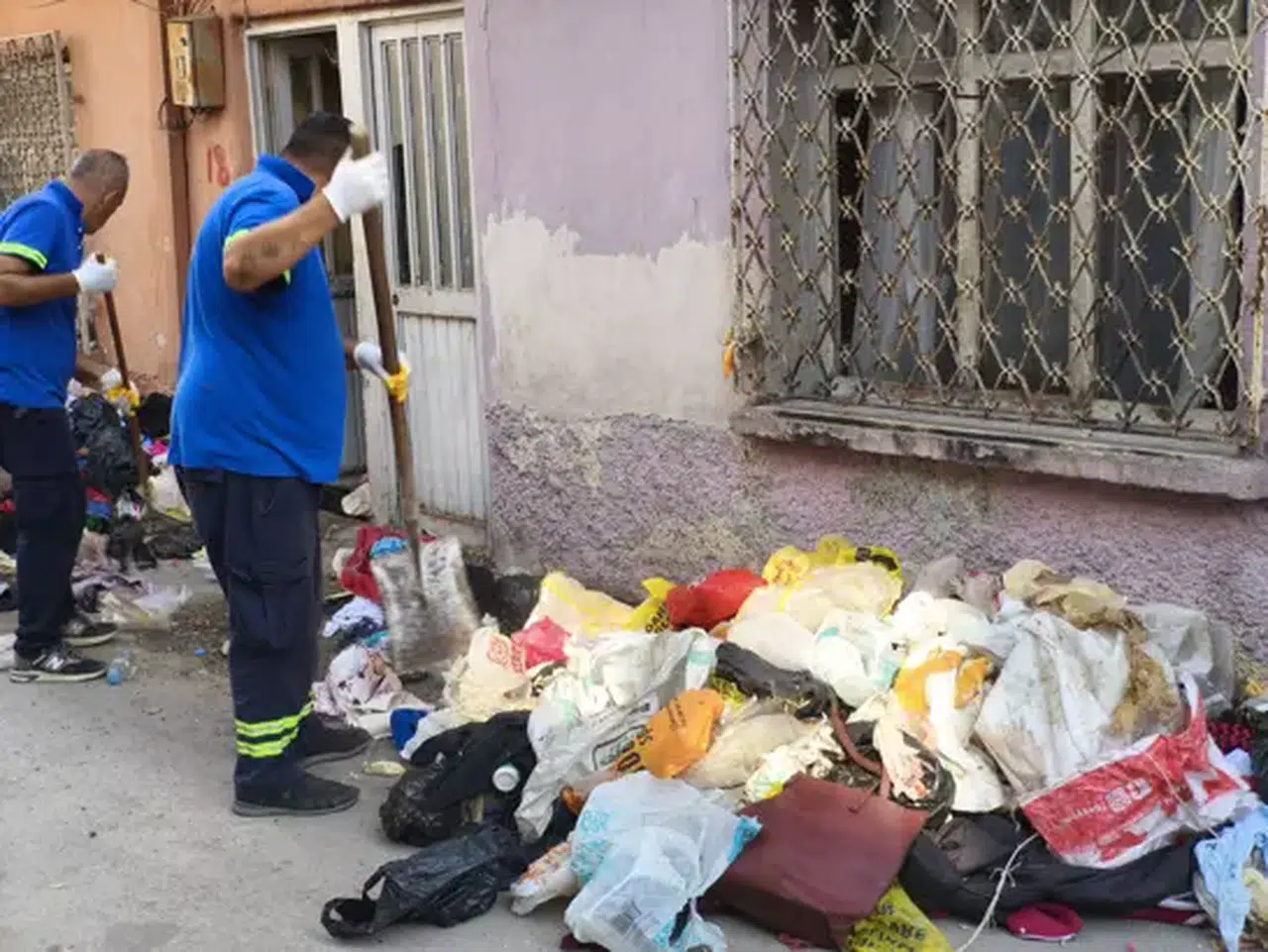 İçeri giren ekipler, birikmiş çöpleri görünce durumu belediyeye bildirdi. Temizlik işçileri, sokağa çıkarılan çöpleri kamyonetlere yükleyerek götürdü.
