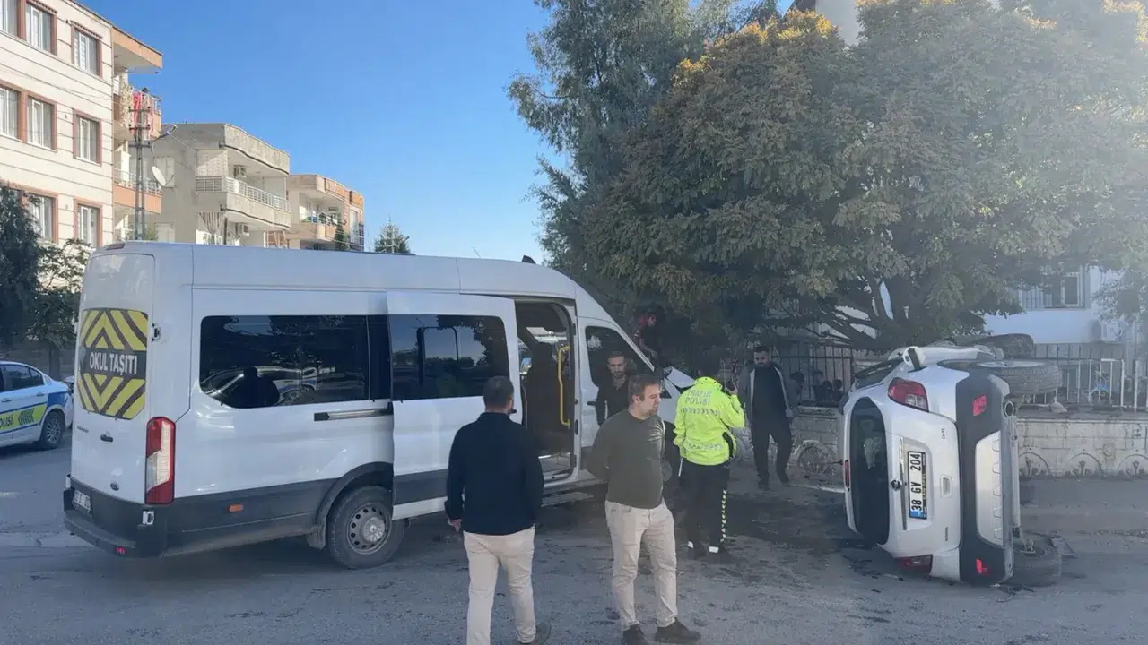 M.E. idaresindeki 02 S 0101 plakalı okul servis minibüsü, Malazgirt Mahallesi Şehit Turan Çelik İmam Hatip Ortaokulu önünde M.E.G. yönetimindeki 38 GV 204 plakalı otomobille çarpıştı.