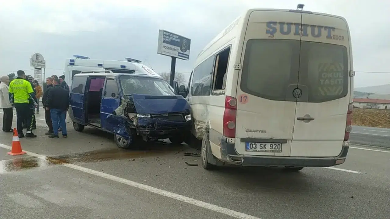 Afyonkarahisar’da biri yolcu minibüsü olmak üzere 2 minibüsün çarpışması sonucu yaşanan trafik kazasında 7 kişi yaralandı.