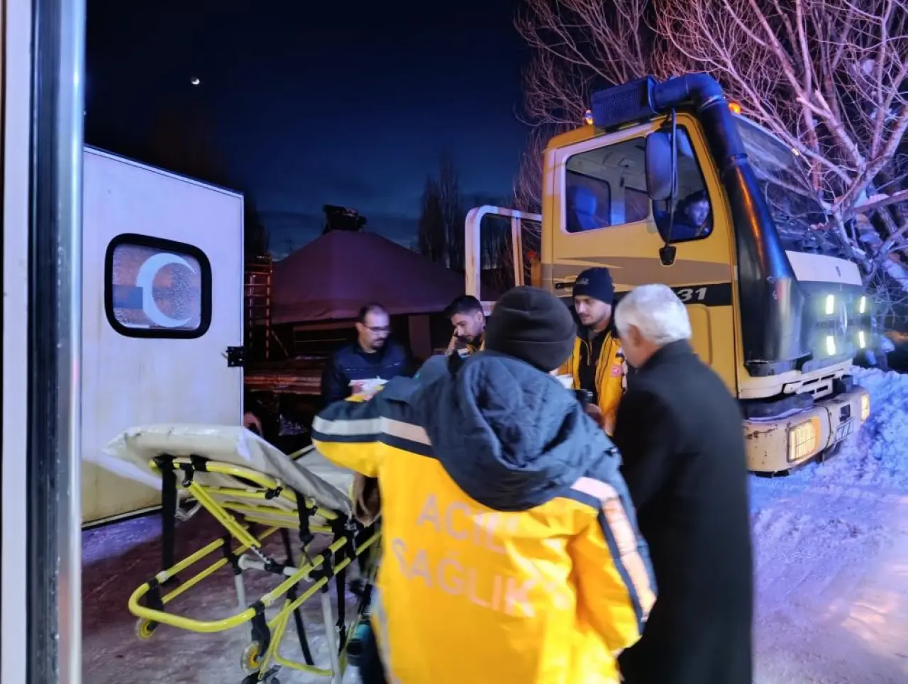 Kardiyak rahatsızlık öyküsü bulunan hastaya ulaşım, olumsuz hava koşulları ve kapalı köy yolu nedeniyle güçlükle sağlandı. Ulaşımın sağlanabilmesi için İl Özel İdaresi ekipleri tarafından yol açma çalışması yürütülürken, sağlık ekipleri de kar paletli ambulansları devreye aldı.