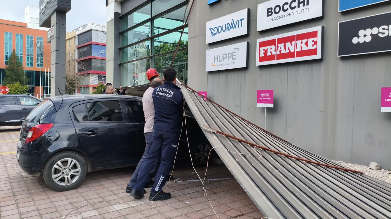 Saatteki hızı 50 kilometreyi bulan rüzgar kentin bazı noktalarında olumsuzluklara neden oldu. Gazi Bulvarı'nda bir iş yerinin çatısı şiddetli rüzgara dayanamayarak yola uçtu. Uçan çatı nedeniyle elektrik telleri koparken, ekipler arızanın giderilmesi için bölgede onarım çalışması yaptı. Termessos Bulvarı üzerinde ise bir işyerine ait reklam tabelası park halindeki 34 VGK 35 plakalı aracın üzerine devrildi. Devrilen tabela araçta maddi hasar oluştururken tabela itfaiye ve polis ekipleri tarafından kaldırılarak otomobil bulunduğu yerden çıkarıldı.
