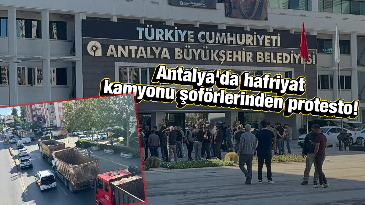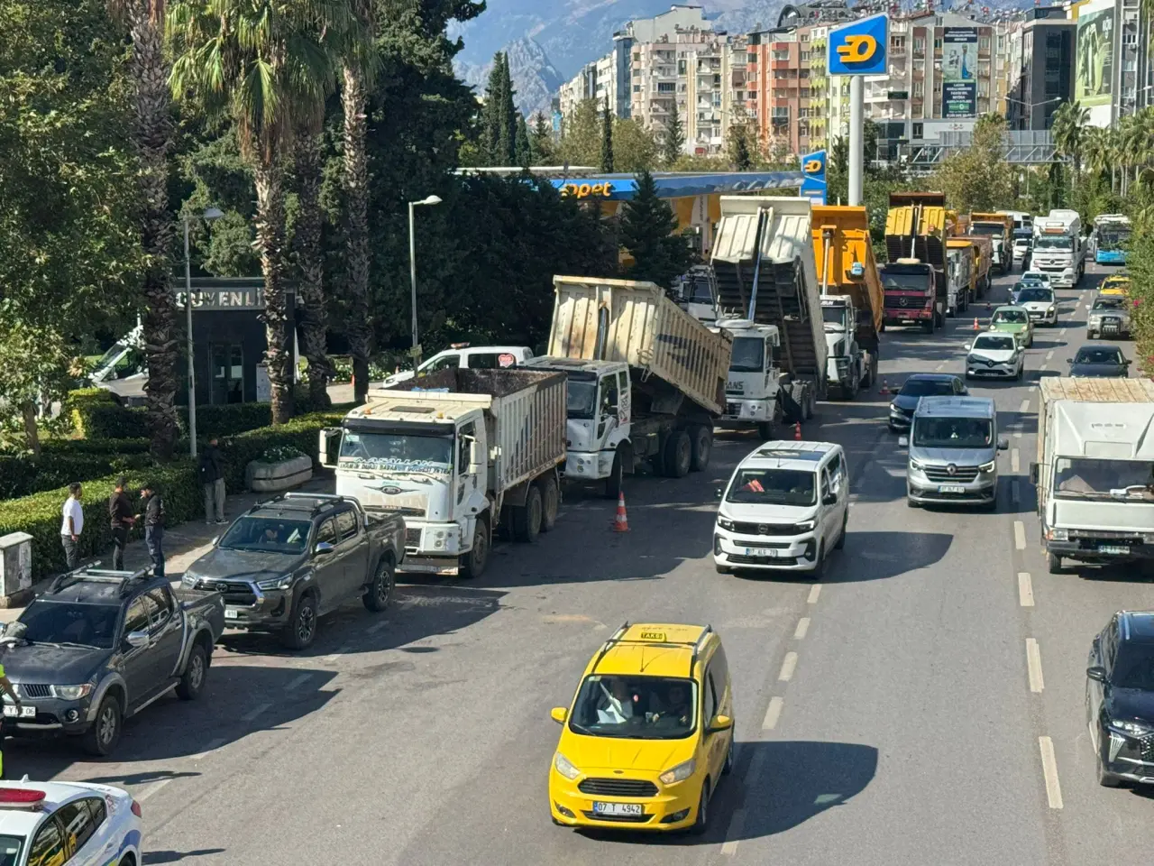 Antalya'da hafriyat kamyonu şoförleri, Büyükşehir Belediyesinin kestiği cezaları protesto etmek amacıyla eylem yaptı.
