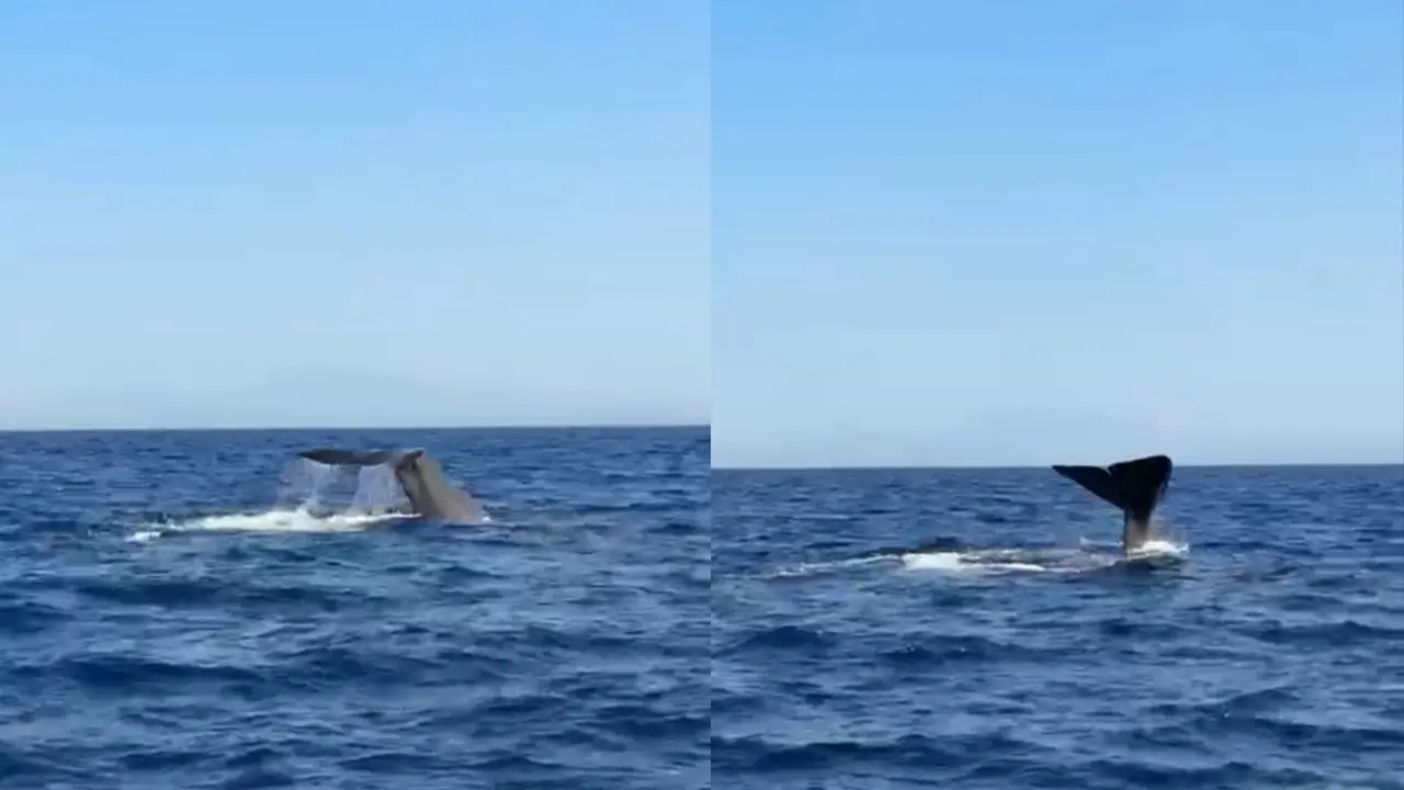 Antalya'nın Manavgat ilçesi Side Limanı’nın 10 mil açığında olta balıkçılığı yapan Alperen Uslu, yaklaşık 15 metre uzunluğunda İspermeçet cinsi balinayı görüntüledi.