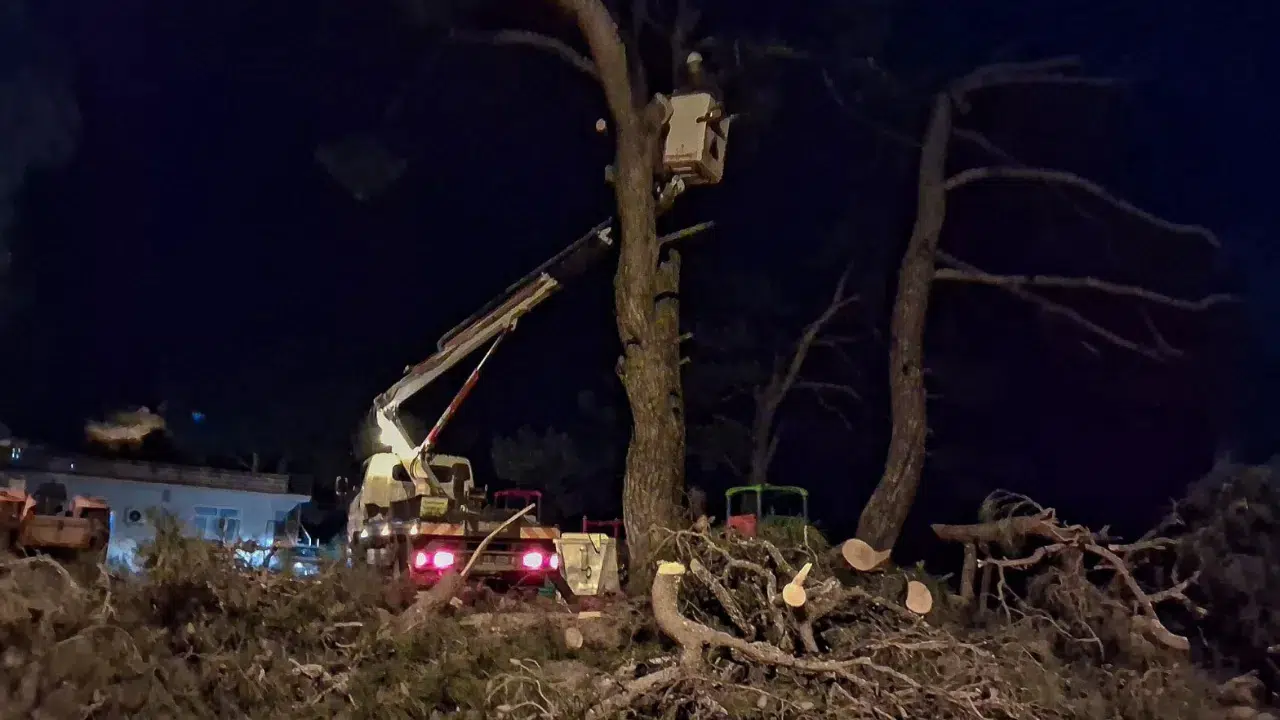 Aydın’da etkili olan kuvvetli fırtına ve sağanak yağış, kent genelinde tehlikeli anlara neden oldu. Efeler ilçesine bağlı Kenger Mahallesi’nde şiddetli rüzgar nedeniyle bir çam ağacı kökünden yan yatarak bir evin üzerine doğru devrilme tehlikesi oluşturdu. Çevrede yaşayan vatandaşların ihbarı üzerine bölgeye yönlendirilen ekipler, muhtemel bir faciayı önlemek için hızla harekete geçti. Bomlu araç yardımıyla kontrollü şekilde müdahale edilen çam ağacı, güvenli biçimde kesilerek kaldırıldı. Yapılan çalışma sayesinde evde yaşayanlar büyük bir tehlikeden kurtarılırken, herhangi bir can ve mal kaybı yaşanmadı.