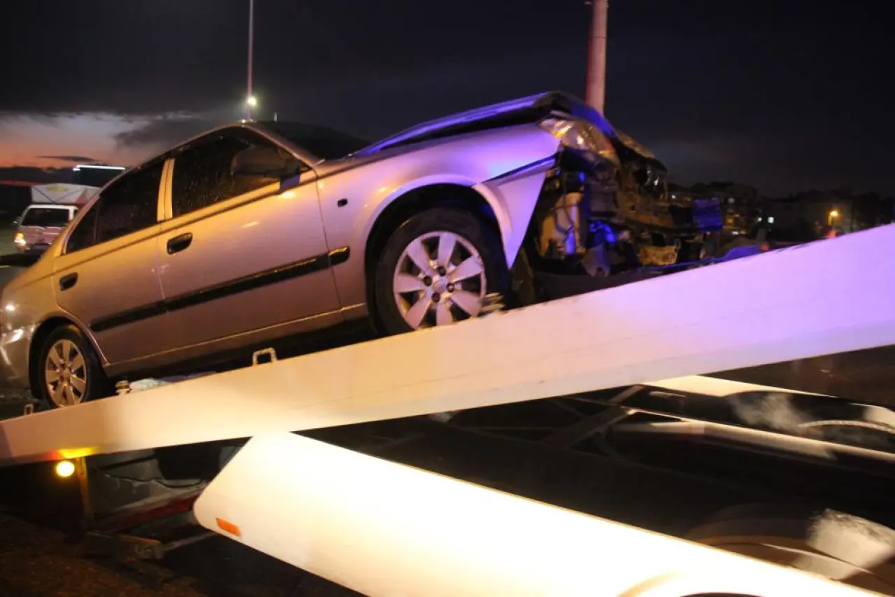Edinilen bilgiye göre, 09 ANA 541 plakalı Hyundai marka otomobil ile 09 APF 005 plakalı Wolkswagen marka ticari araç henüz bilinmeyen bir nedenle çarpıştı. Çarpışmanın etkisi savrulan ticari araç refüjdeki trafik levhalarına çarparak yan yattı.