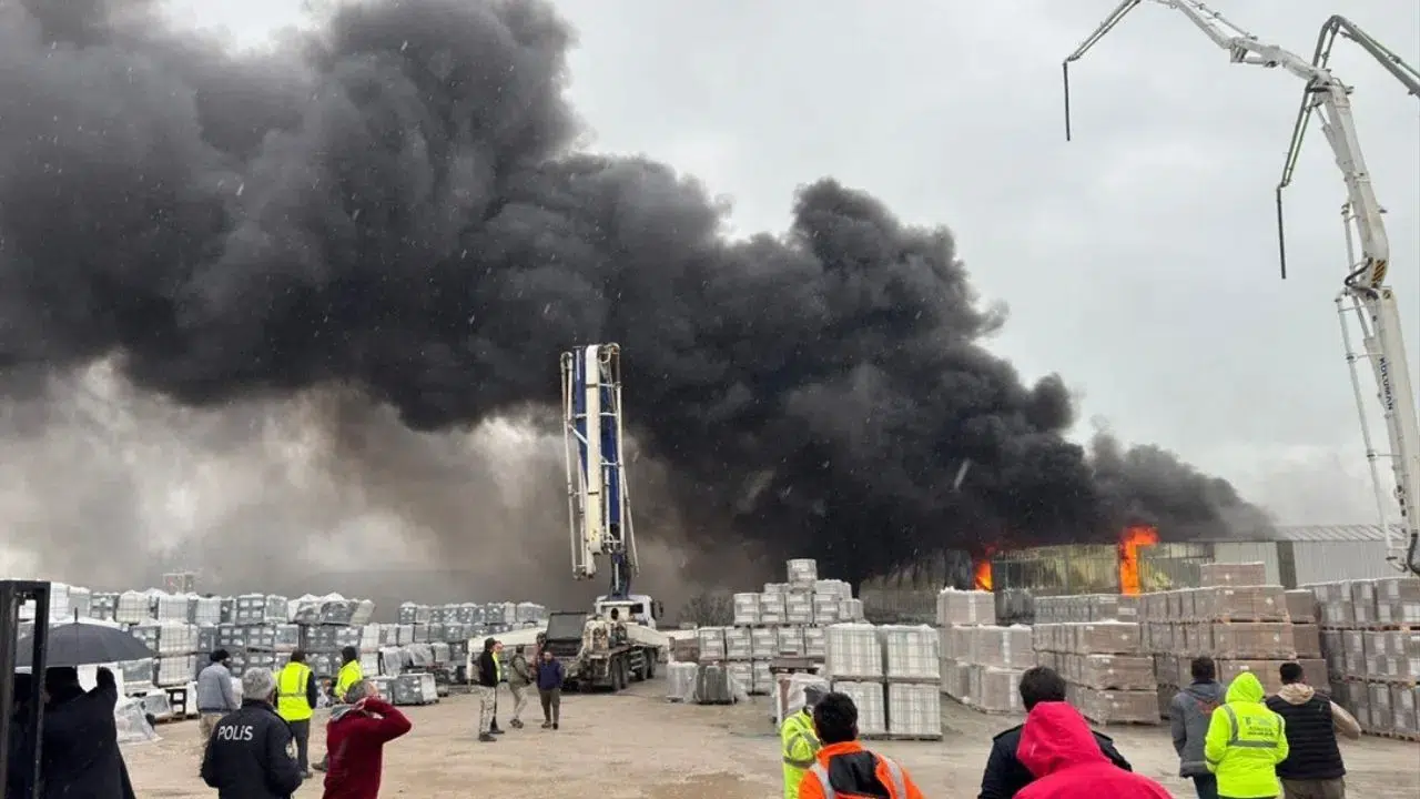 Balıkesir Ağır Sanayi Bölgesi Gümüşçeşme Mahallesi'ndeki bir yapı malzemesi firmasına ait depoda henüz bilinmeyen nedenle yangın çıktı.