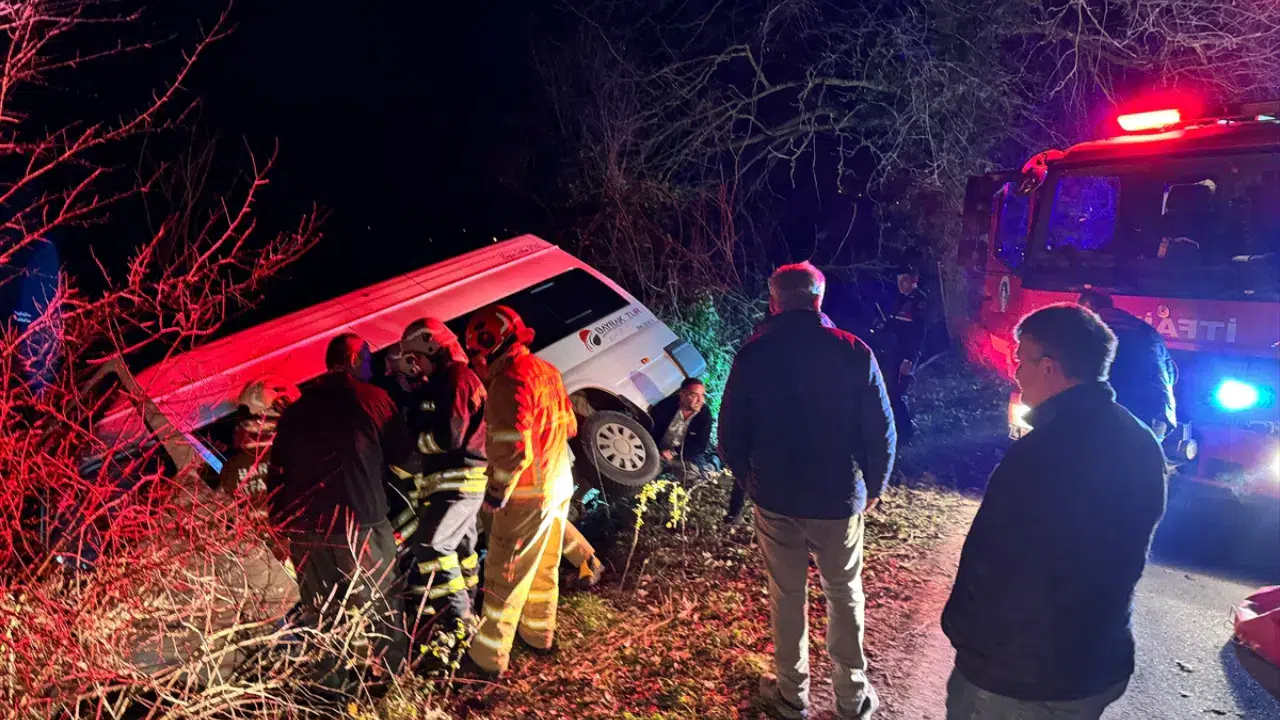 Bartın'da minibüsün şarampole devrilmesi sonucu meydana gelen kazada 4 kişi yaralandı. Edinilen bilgiye göre, E.B. (55) idaresindeki 74 AU 360 plakalı minibüs, Dereköyü köyü mevkisinde şarampole devrildi.