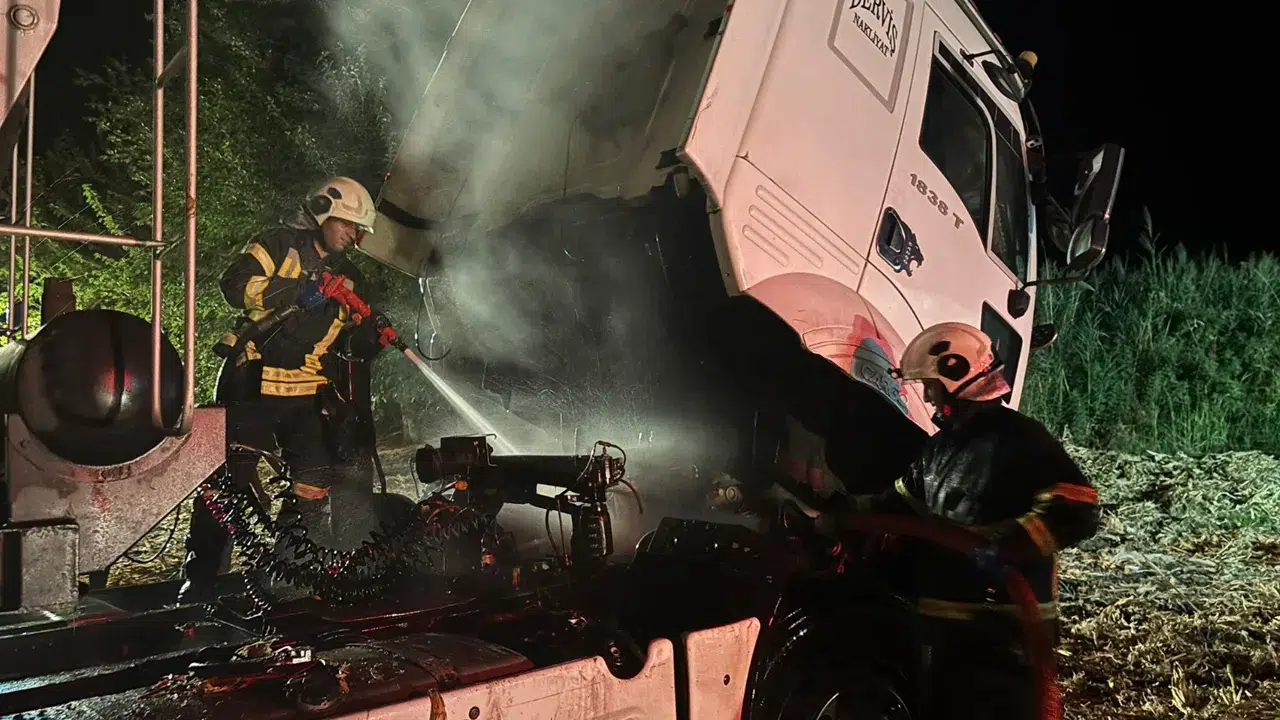 Sürücünün ihbarı üzerine olay yetine itfaiye ekibi sevk edildi. Yangın, ekiplerin müdahalesiyle söndürülürken tır, kullanılamaz geldi.