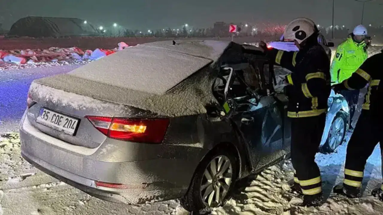 Sürücüsünün ismi öğrenilemeyen 35 COE 204 plakalı otomobil, kar temizleme çalışması yapan greyder ile çarpıştı. Çarpışmanın etkisiyle otomobilin içindeki Mehmet Yılmaz ve 4 kişi yaralandı. Kazayı gören çevredeki vatandaşların durumu 112 Acil Çağrı Merkezi'ne bildirmesi sonucu bölgeye jandarma ve sağlık ekipleri sevk edildi.