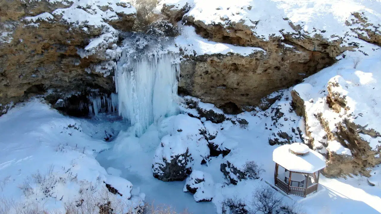 divanyolu dağları'ndan dökülen sular buz kesti