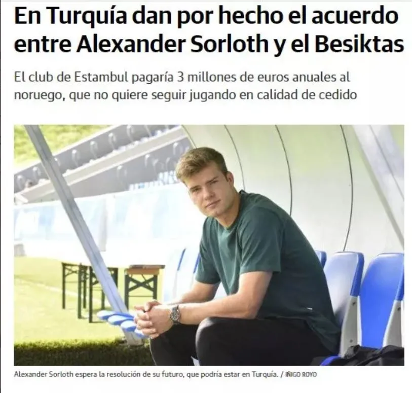 İspanyol Gazetesi El Diario Vasco'nun Sörloth ile ilgili yaptığı haberine göre Beşiktaş, oyuncu için birçok konuda anlaşmaya vardı.