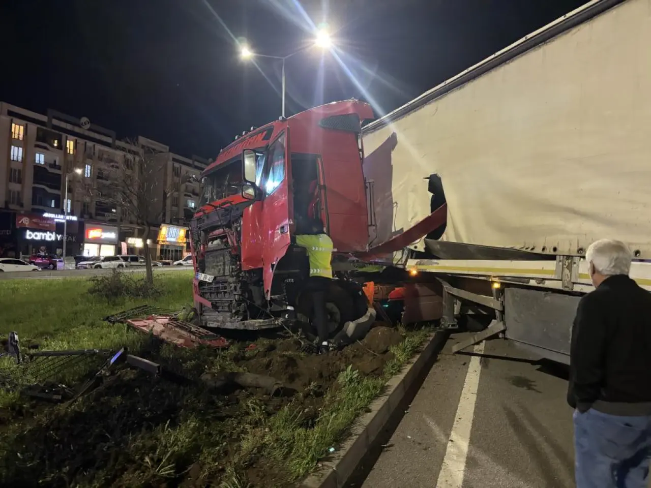 Sürücünün direksiyon hakimiyetini kaybetmesiyle tır refüje girerek facianın eşiğinden dönüldü. Kazada tırda maddi hasar oluşurken, olayda ölen ya da yaralanan olmadı. Kaza nedeniyle bölgede trafik kısa süreli kontrollü olarak sağlanırken, ekiplerin çalışmasının ardından yol yeniden normale döndü.