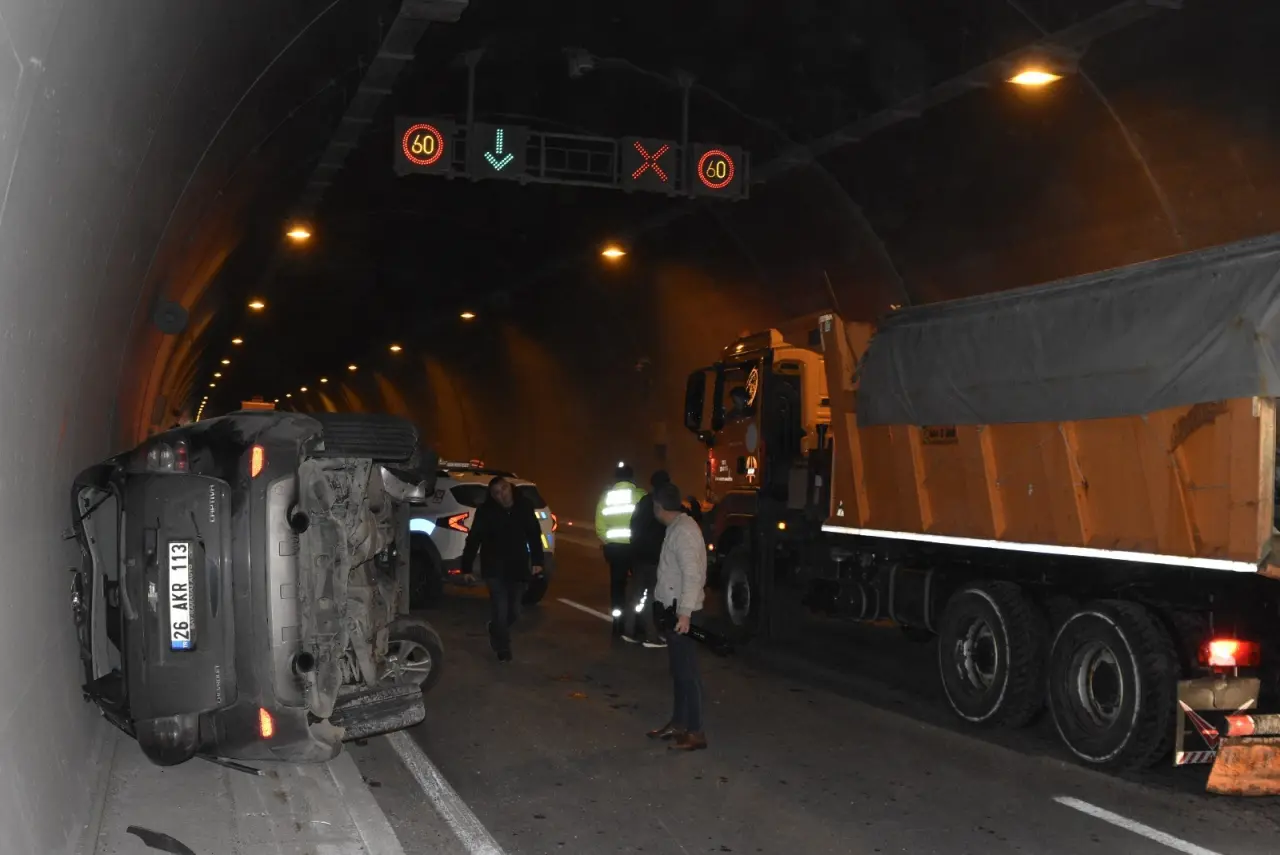 Edinilen bilgilere göre kaza, 8 Ağustos Tüneli’nde meydana geldi. Karayolları Tünel Şefliği ekipleri tünel içerisinde bulunan kameralarda bakım çalışması yaptığı sırada, sürücülerinin isimleri henüz öğrenilemeyen 26 AKR 113 plakalı otomobil ile aynı yönde ilerleyen 12 AAG 700 plakalı hafif ticari araca çarptı. Çarpmanın etkisiyle araçlardan biri kaldırıma çıkarak takla attı.