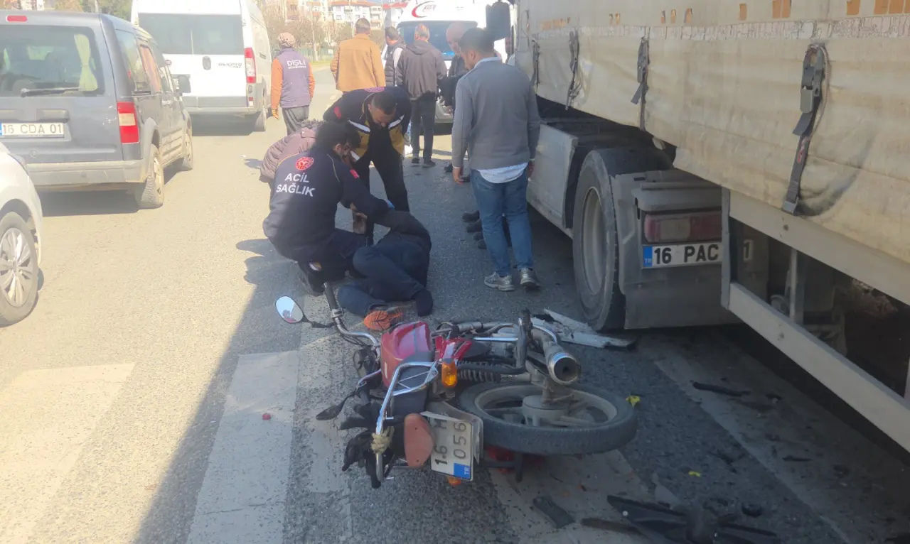 Kaza, saat 12.15 sıralarında Orhangazi'de Yalova-Bursa kara yolu şehir merkezi geçişinde meydana geldi. Edinilen bilgilere göre, Bursa'dan Yalova yönüne seyreden Mustafa Can (64) yönetimindeki 16 PAC 01 plakalı tır, eski kaymakamlık lojmanı kavşağına geldiği sırada trafikte ani yavaşlama yaşanması üzerine önce Zakaria Alhamo Alshikho (43) idaresindeki 16 MT 056 plakalı motosiklete, ardından ışıklarda bekleyen Durmuş Coşkun (50) yönetimindeki 50 FL 658 plakalı kamyona çarptı. Çarpmanın etkisiyle savrularak tırın altında kalmaktan son anda kurtulan motosikletteki Suriye uyruklu çift ile 12 yaşındaki oğulları yaralandı.