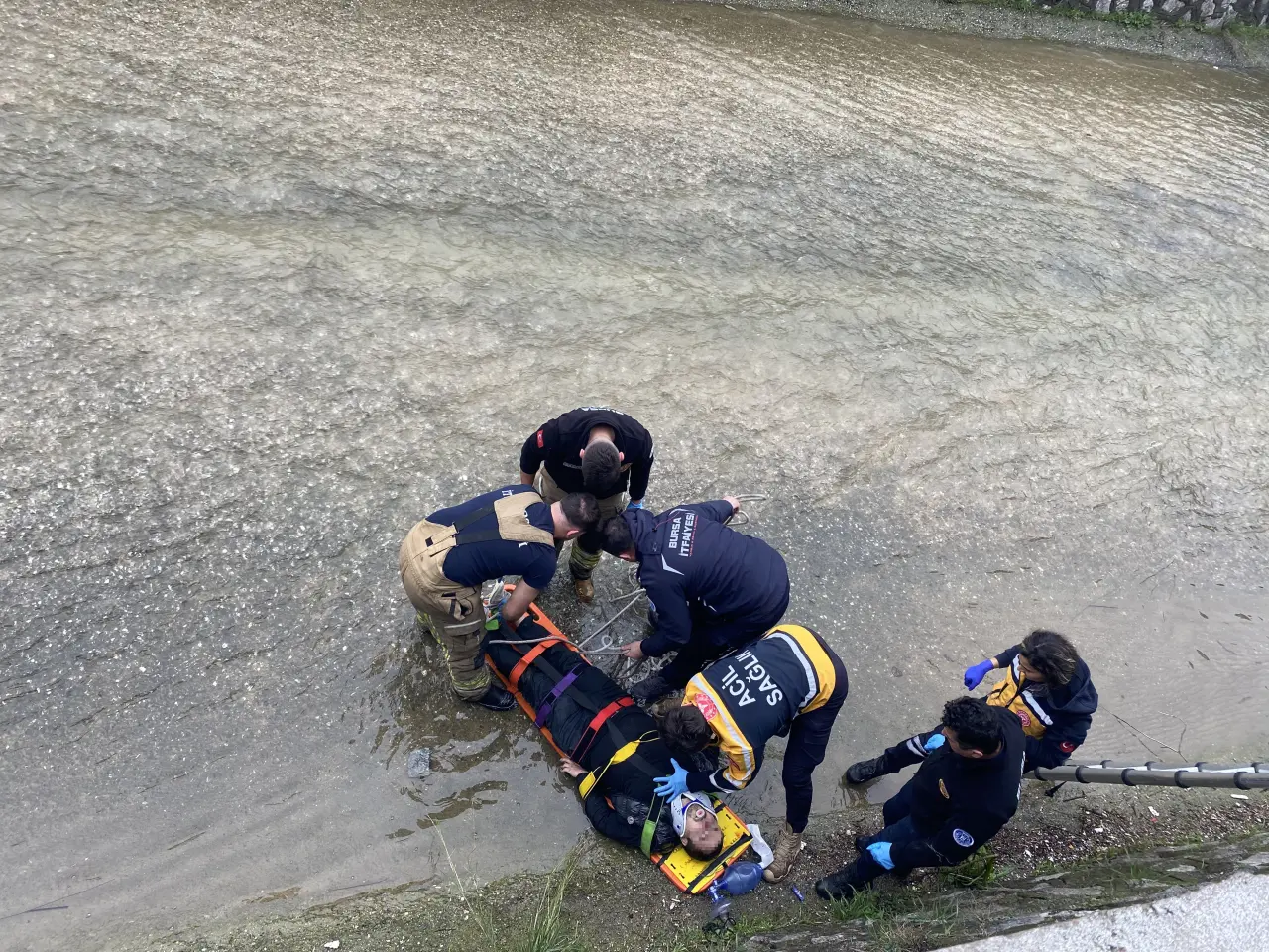 Bursa'nın Yıldırım ilçesinde dereye düşen genç adam, kalp masajıyla hayata döndürüldü.