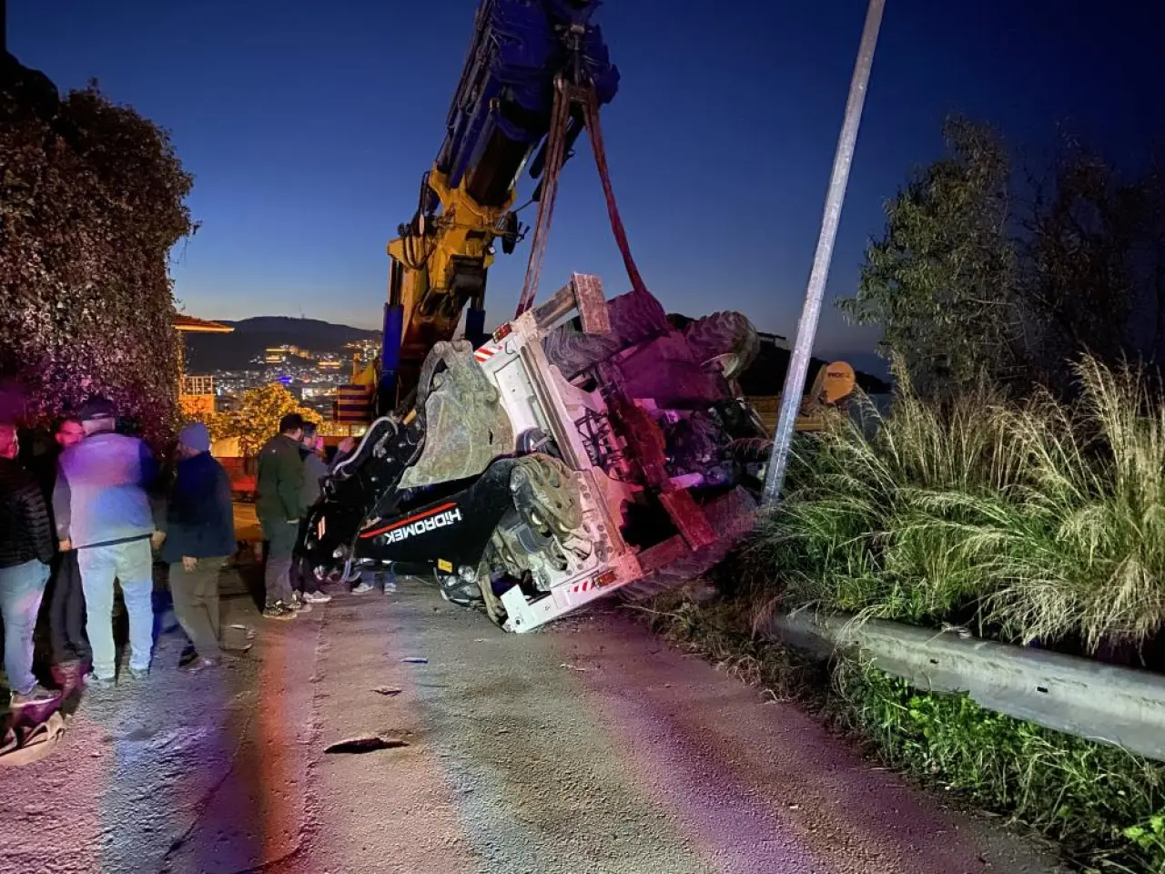 mudanya ilçesinde vinçteki iş makinesi devrildi