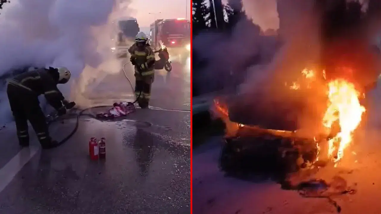 Olay, Nilüfer ilçesi Görükle Mahallesi'nde meydana geldi. Ulaşılan bilgilere göre, İstanbul-İzmir otobanına çıkmak için ilerleyen otomobilin motor kısmından dumanlar yükselmeye başladı. Volkswagen marka otomobilini yolun kenarına çeken sürücü, yangın tüpüyle müdahale etmek istedi. Alevlerin bir anda çoğalmasıyla vatandaşlar da araçlarından aldıkları yangın tüpleriyle destek olmaya çalıştı.