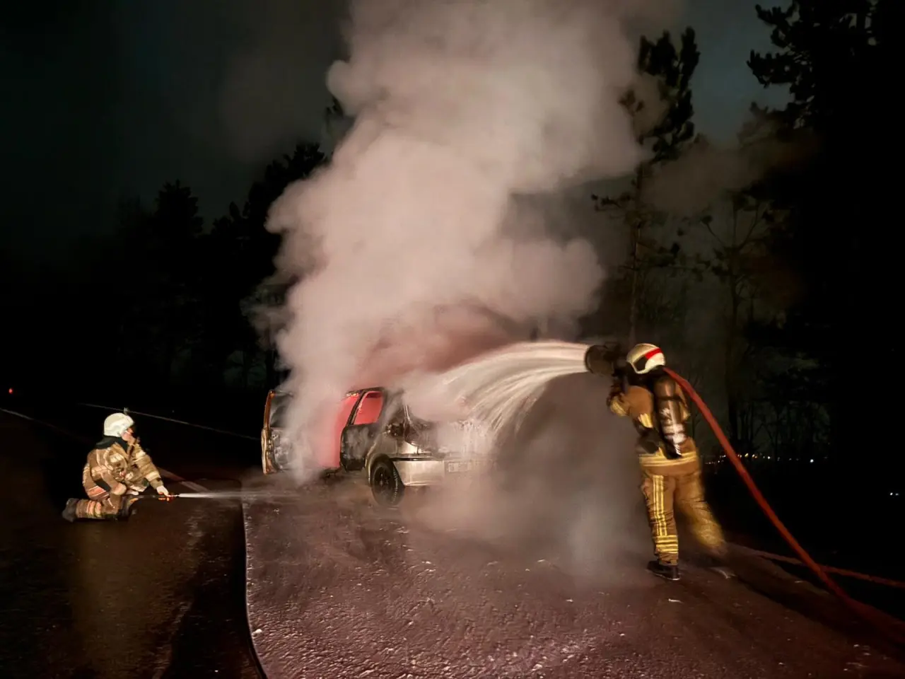 Enes Y. yönetimindeki 16 BZN 229 plakalı otomobil seyir halindeyken henüz bilinmeyen bir nedenle motor kısmından dumanlar çıkmaya başladı. Durumu fark eden sürücü Enes Y., aracını yol kenarına park edip itfaiyeye haber verdi. O sırada araç alev alev yanmaya başladı. Yangın yerine gelen itfaiye ekipleri alevlere müdahale ederek kısa sürede söndürdü. Araç yangınında yaralanan olmazken araç kullanılamaz hale geldi. Ekipler yangının çıkış nedeni hakkında inceleme başlattı.