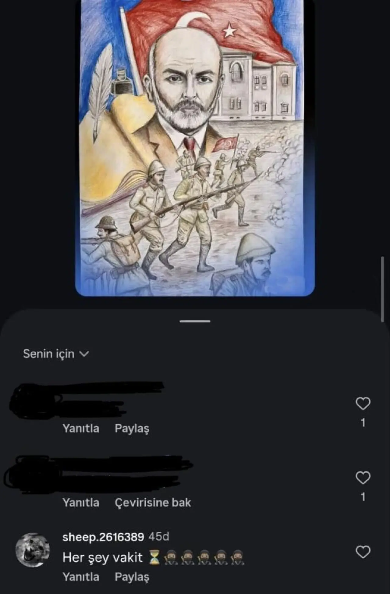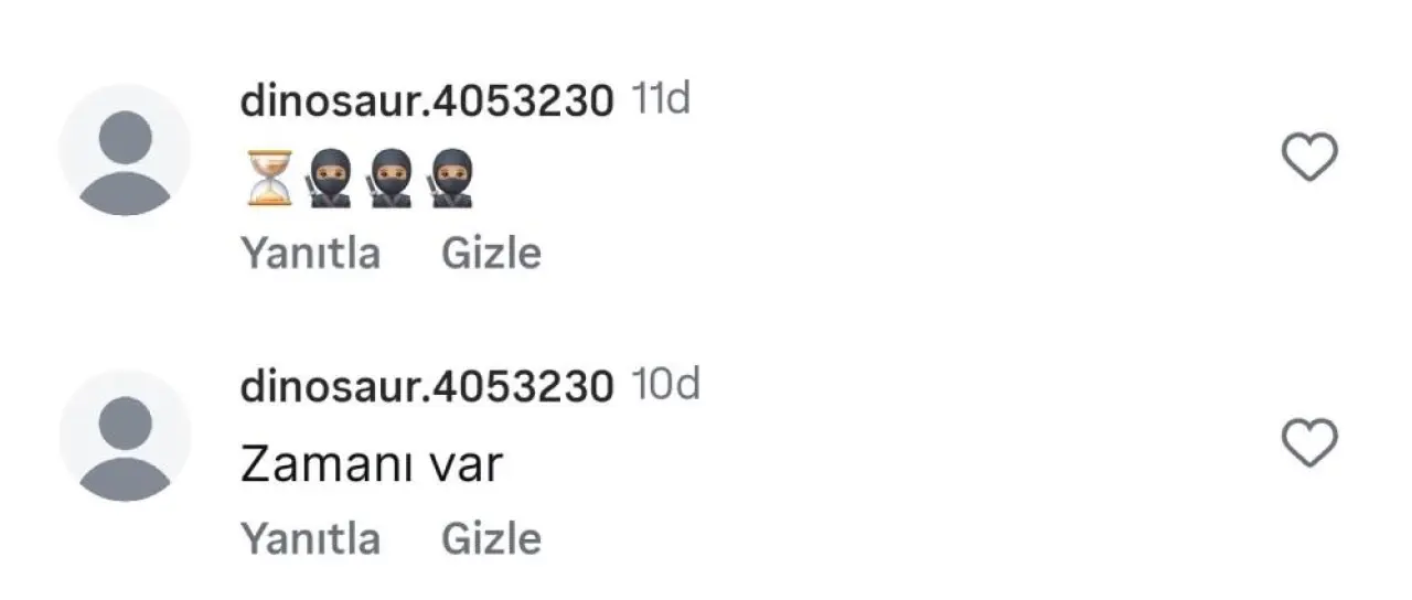 Çanakkale'nin Gelibolu ilçesinden Çan'daki bir lisenin sosyal medya hesabına, sheep.2616389 kullanıcı adı ile "her şey vakit" yorumu yapan 20 yaşındaki Ü.B., Gelibolu ilçesinde de bir yerel haber sayfasındaki bir paylaşımın altına dinosaur.4053230 kullanıcı adı ile ‘Zamanı var' yorumu yaptı.