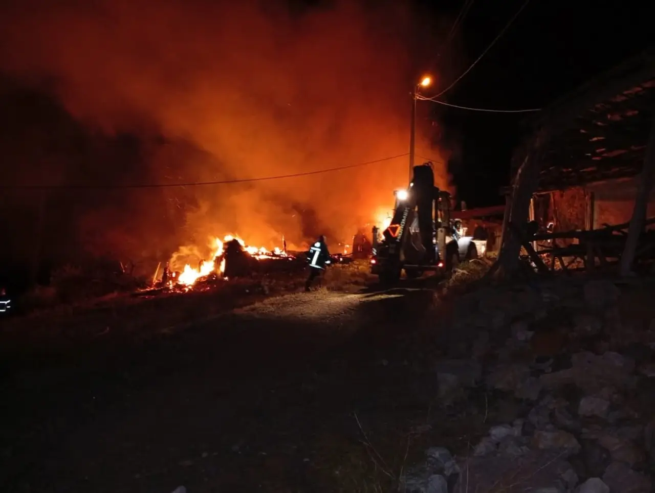 Olay yerine gelen ekiplerin müdahalesiyle yangın kısa sürede kontrol altına alınarak söndürüldü. Yangında ev, samanlık ve saman balyaları küle döndü.