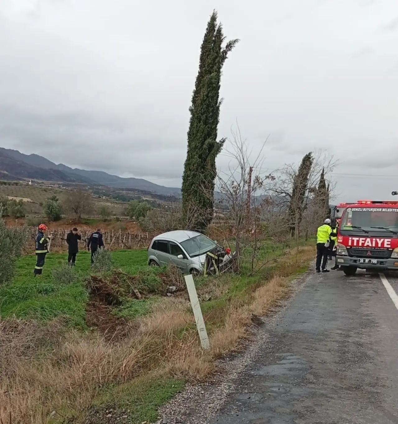 Denizli’nin Buldan ilçesinde yağmur nedeniyle kayganlaşan yolda kontrolden çıkan otomobil üzüm bağına savruldu. Aynı güzergahta aynı gün içerisinde yaşanan ikinci kaza dikkat çekti.
