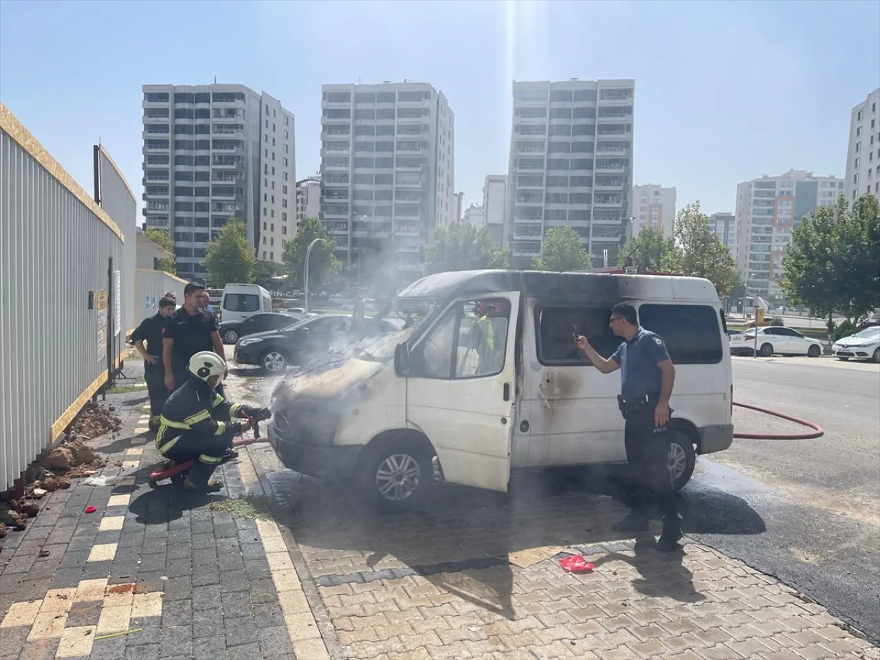 Mezopotamya Mahallesi'nde park halindeki 21 EE 483 plakalı minibüste henüz bilinmeyen nedenle yangın çıktı.