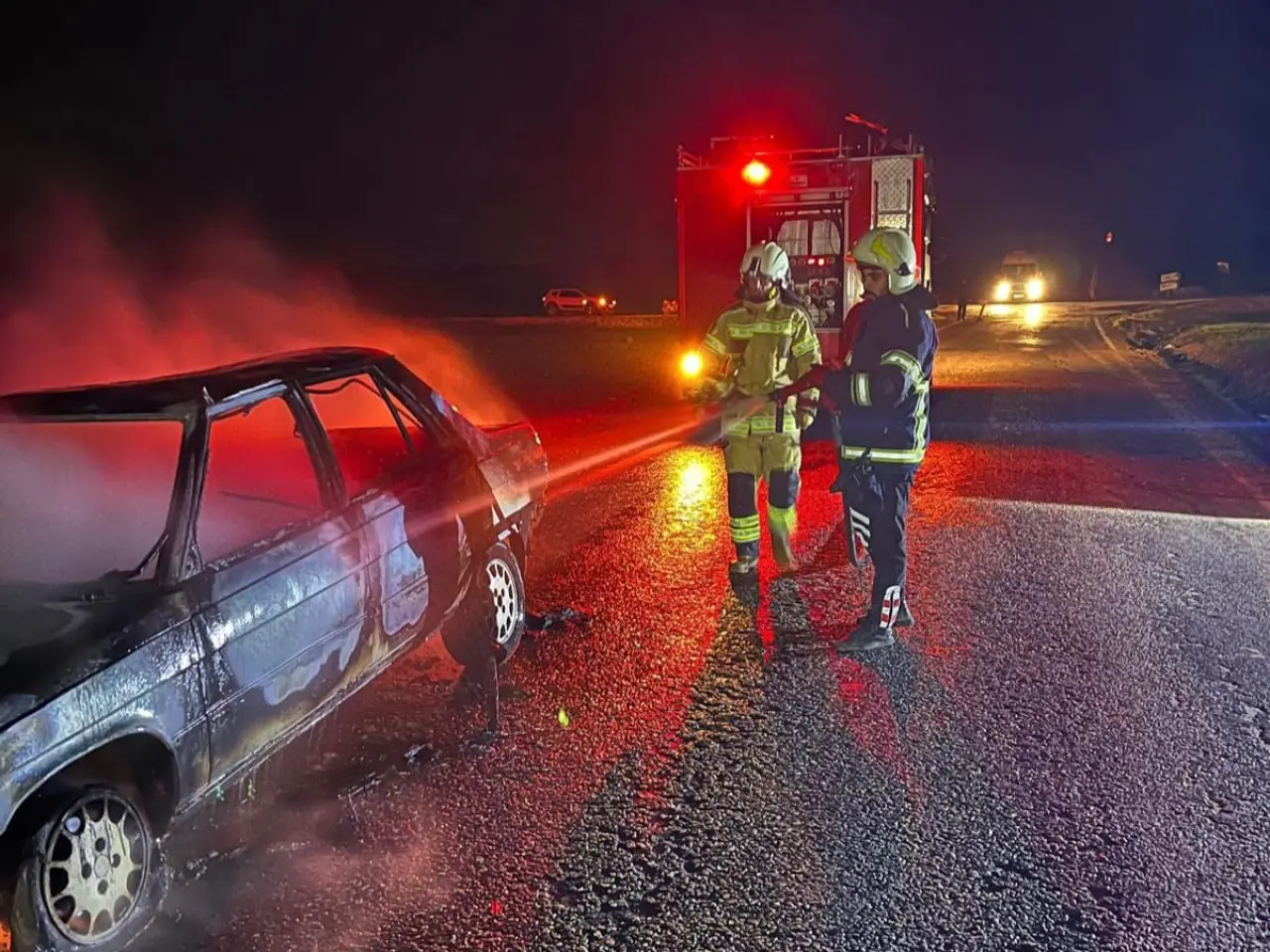 Edinilen bilgilere göre, dün akşam saatlerinde ilçenin Keberli Mahallesi'nde seyir halindeki bir otomobil, bir anda yanmaya başladı. Sürücü, aracı yol kenarına çekip, 112 Acil Çağrı Merkezini aradı. İhbar üzerine olay yerine itfaiye ve jandarma ekibi sevk edildi. İtfaiye erlerince söndürülen yangında ölen ve yaralanan olmazken, otomobil kullanılamaz hale geldi.