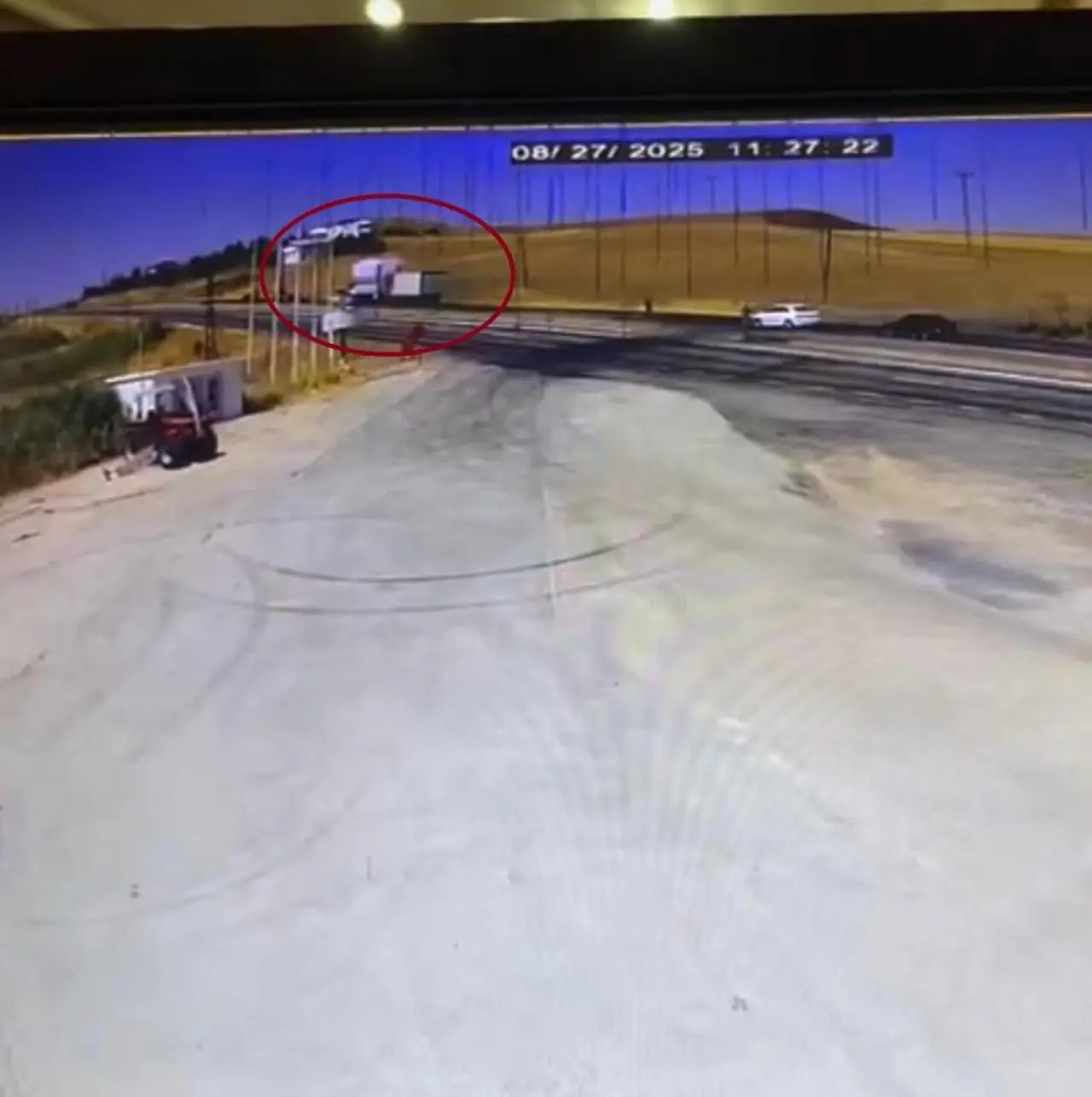 Kazaya ilişkin görüntüler, bölgedeki bir güvenlik kamerasına yansıdı. Görüntülerde, saman yüklü kamyonun yol kontrolü yaptıktan sonra şeridine girdiği ve kısa süre sonra arkadan gelen tırın hızla kamyona çarptığı anlar yer aldı. Olayla ilgili jandarma ekipleri tarafından soruşturma başlatıldı.