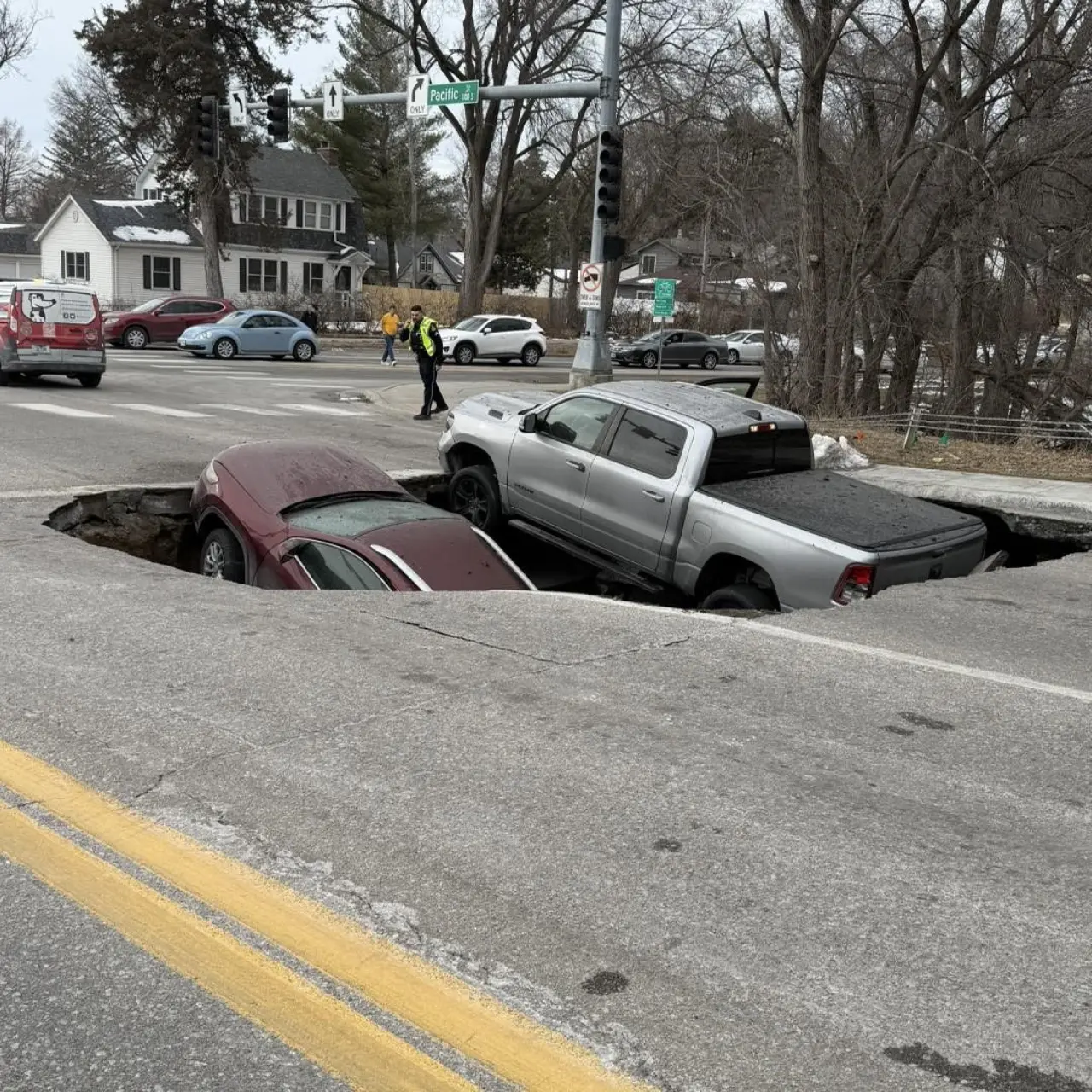 ABD'nin Nebraska eyaletine bağlı Omaha şehrindeki bir kavşakta aniden yol çöktü.