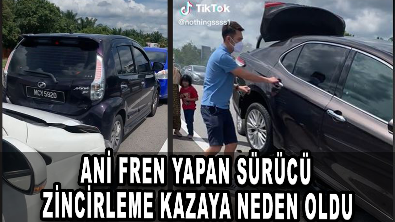 Hızla giden aracın ani fren yapması sonucu arkasından gelen birçok araba kazaya karıştı.