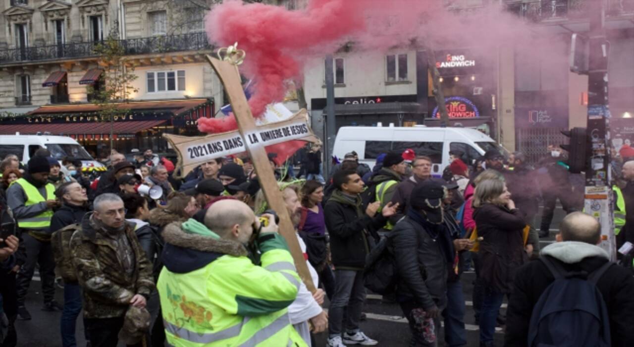 Fransa'da aylardır her cumartesi hükümetin aşı zorunluluğu ve sağlık ruhsatı uygulamasına karşı düzenlenen gösteriler, Noel gününde de devam etti.