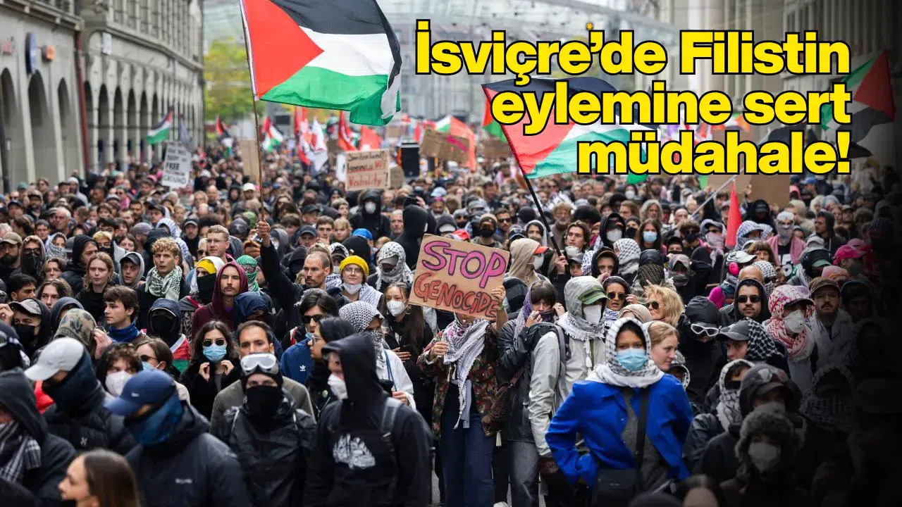Bern’in kalbinde gerçekleştirilen gösteriye binlerce kişi katıldı. Filistin bayrakları taşıyan eylemciler, “Özgür Filistin” ve “Nehirden denize özgür Filistin” sloganları eşliğinde yürüyüşe geçti. Kalabalık, Federal Parlamento binasına doğru ilerlemek isterken güvenlik güçleri eyleme müdahale etti.