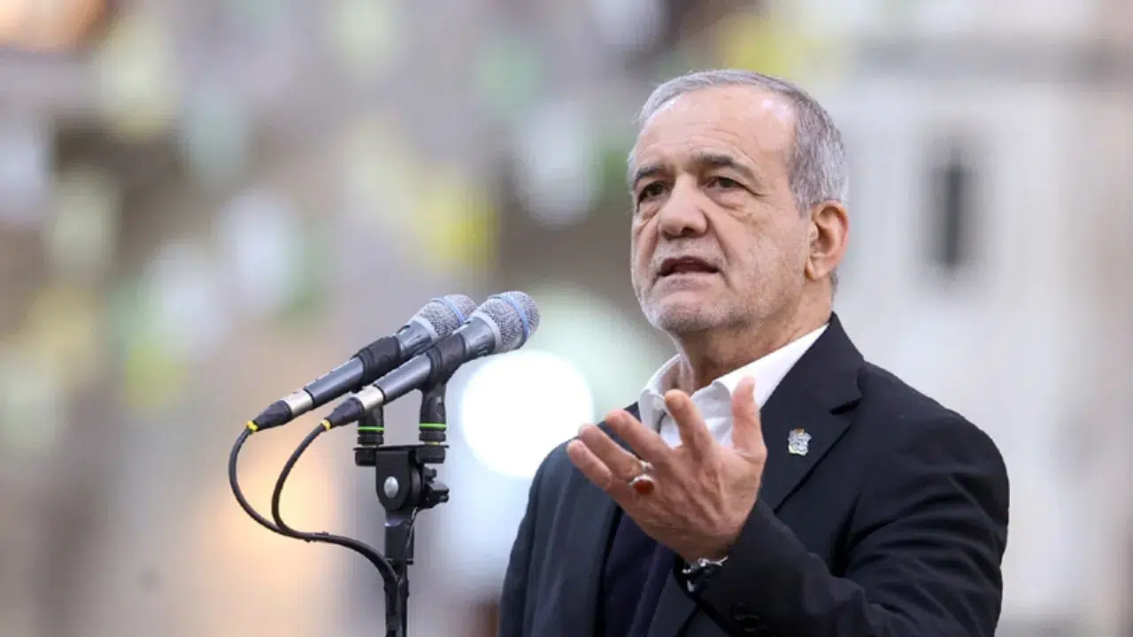 Ülkede yönetime yönelik eleştirileri görmezden gelmediklerini ve kabul ettiklerini belirten Pezeşkiyan, ancak ABD-İsrail saldırılarına karşı toplumun birlik ve beraberlik içerisinde olunması gerektiğini ifade etti. Pezeşkiyan, ABD ve İsrail'in bölgede terör estirdiğini vurguladı. ABD Başkanı Donald Trump'ın İran'ın nükleer faaliyetlerini engelleme çabalarının geçerli bir dayanağı bulunmadığını söyleyen Pezeşkiyan, "Savaş peşinde değiliz, haklarımızı talep ediyoruz" dedi. Pezeşkiyan Tahran yönetiminin savaşı başlatan taraf olmadığını ve onurlu bir şekilde savaşı bitirmeye çalıştıklarını dile getirdi.
