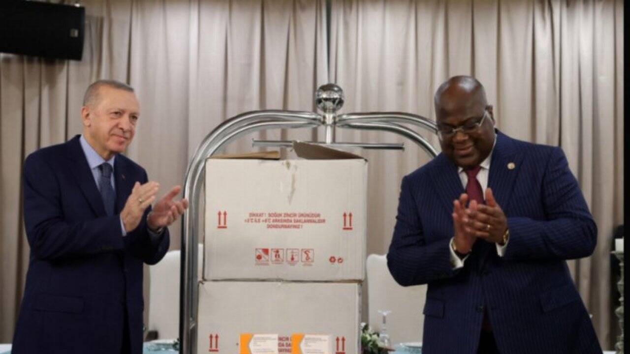 Kinşasa'da bir otelde gerçekleştirilen temsili törende, aşılar, Cumhurbaşkanı Erdoğan tarafından Kongo Demokratik Cumhuriyeti Cumhurbaşkanı Felix Tshisekedi'ye teslim edildi.