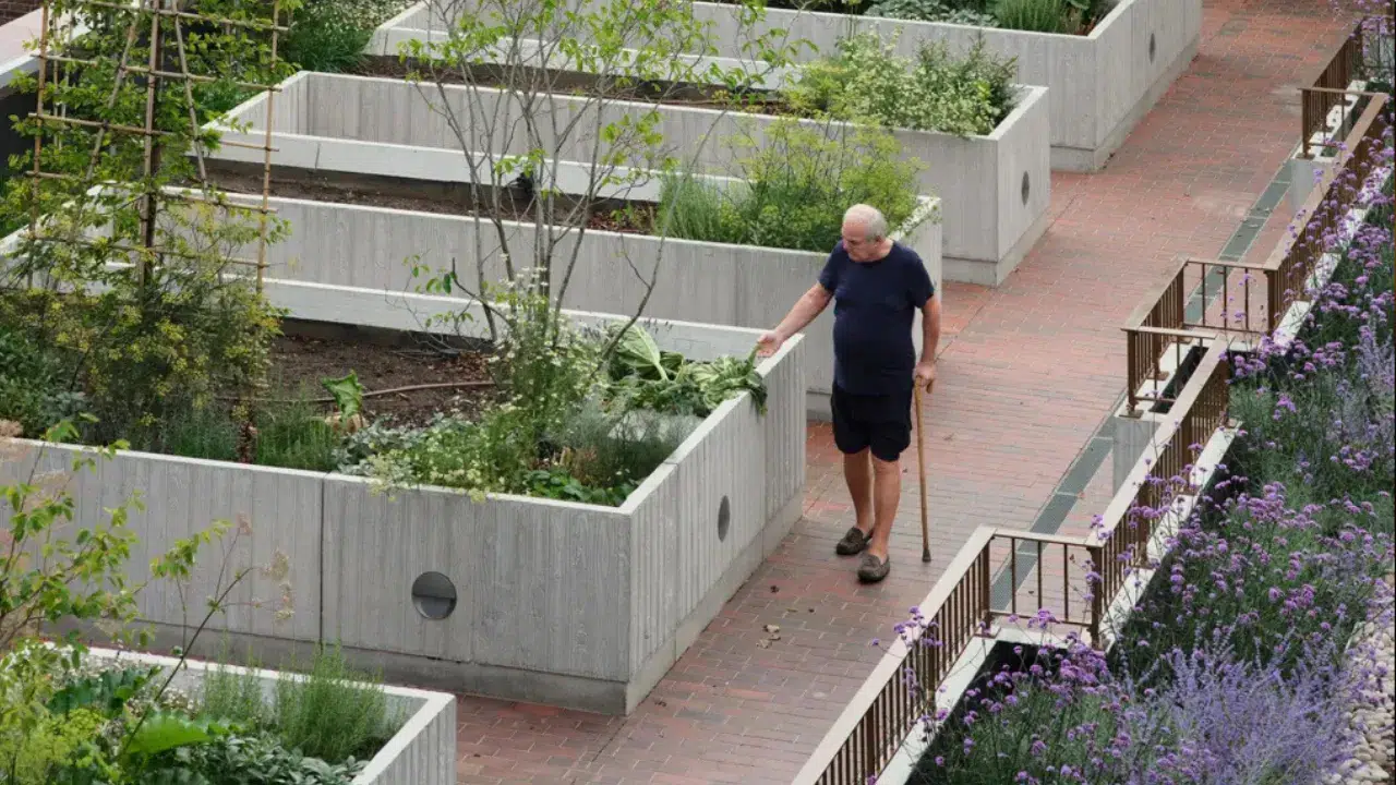 Londra’nın güneyindeki Southwark bölgesinde 65 yaş üstü bireyler için uygun fiyatlı daireler sunan Appleby Blue Almshouse, yalnızlıkla mücadele etmeyi amaçlayan modern tasarımıyla bu yılın Royal Institute of British Architects (RIBA) Stirling Ödülü’nü kazandı.
