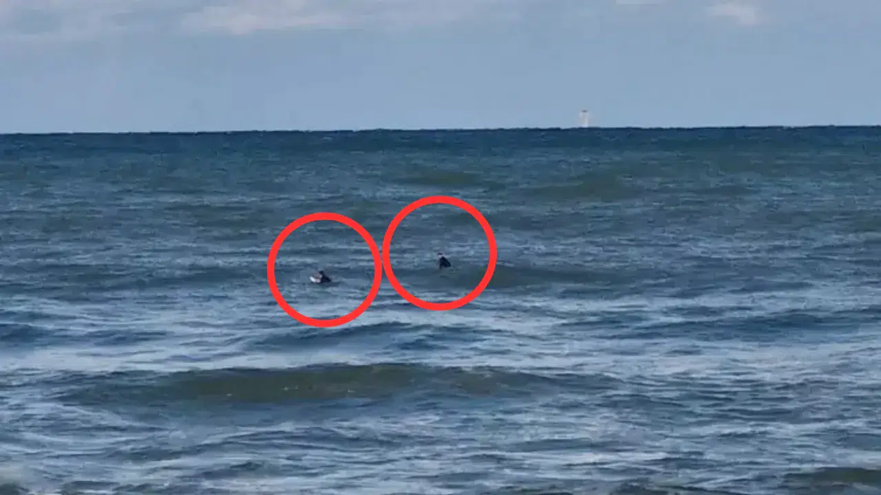 İlçe merkezindeki Çuhallı Plajı’na gelen Emre Kara ve Yusuf Kılıç Doğan, dalgalı denizi fırsat bilerek sörf yaptı. Açık denizde dalgaların içerisinde Kara ve Doğan’ı görenler, boğuluyorlar korkusuyla 112 Acil Çağrı Merkezi’ni arayıp ihbarda bulundu.