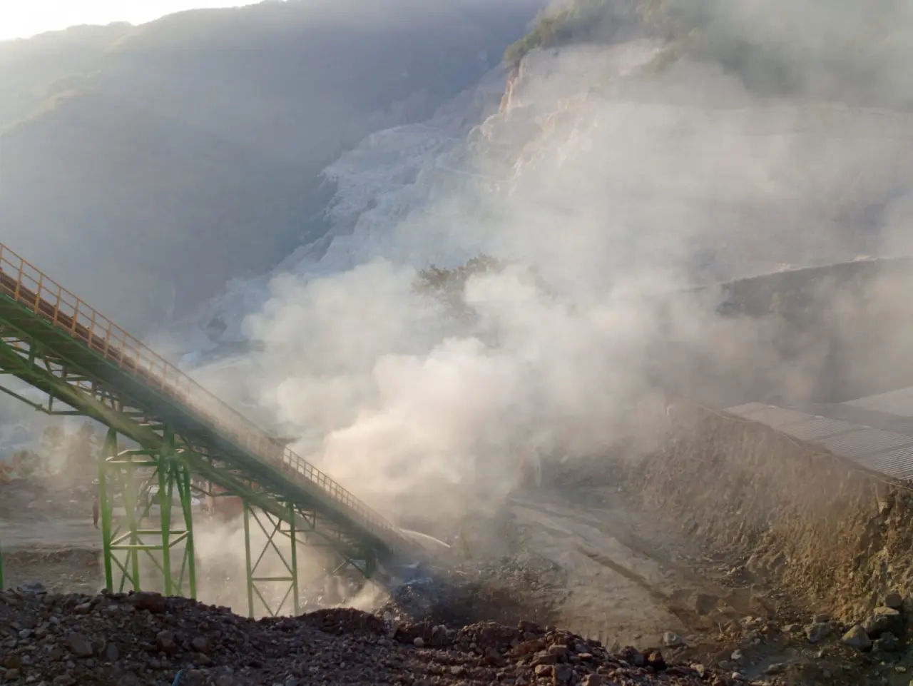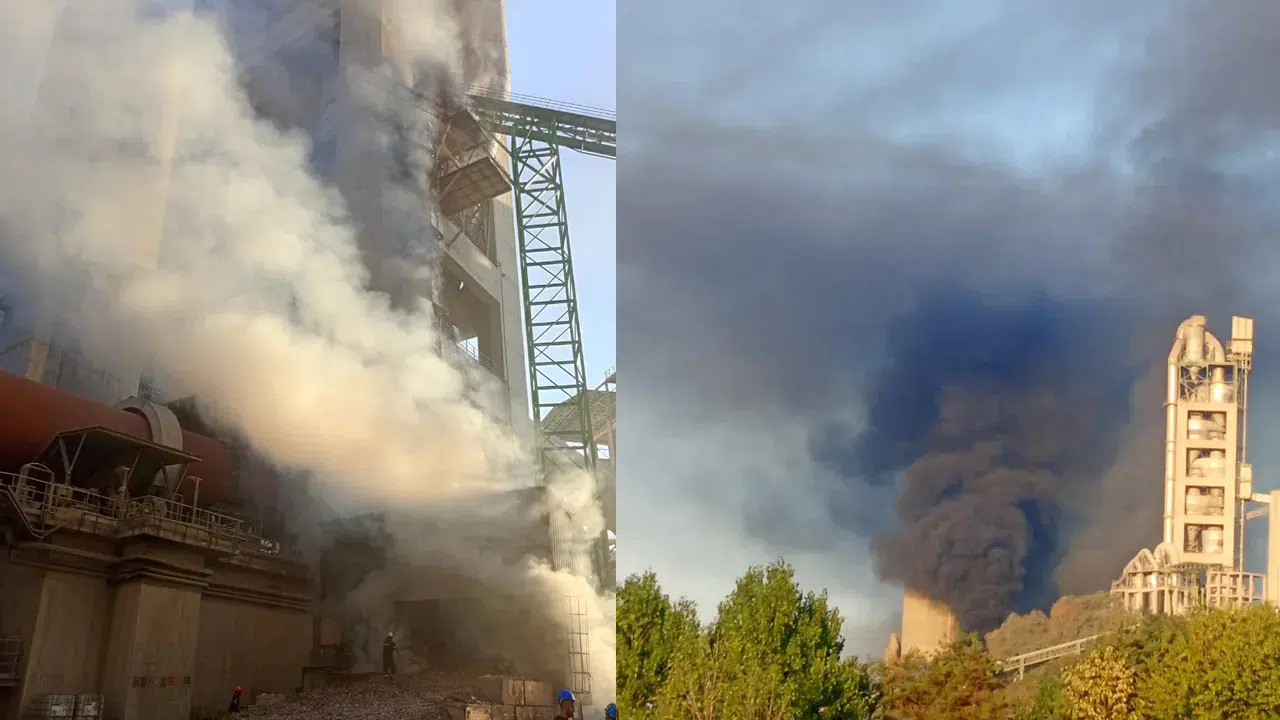 Aksu Mahallesi'ndeki bir çimento fabrikasının taşıma bandında henüz belirlenemeyen nedenle yangın çıktı.