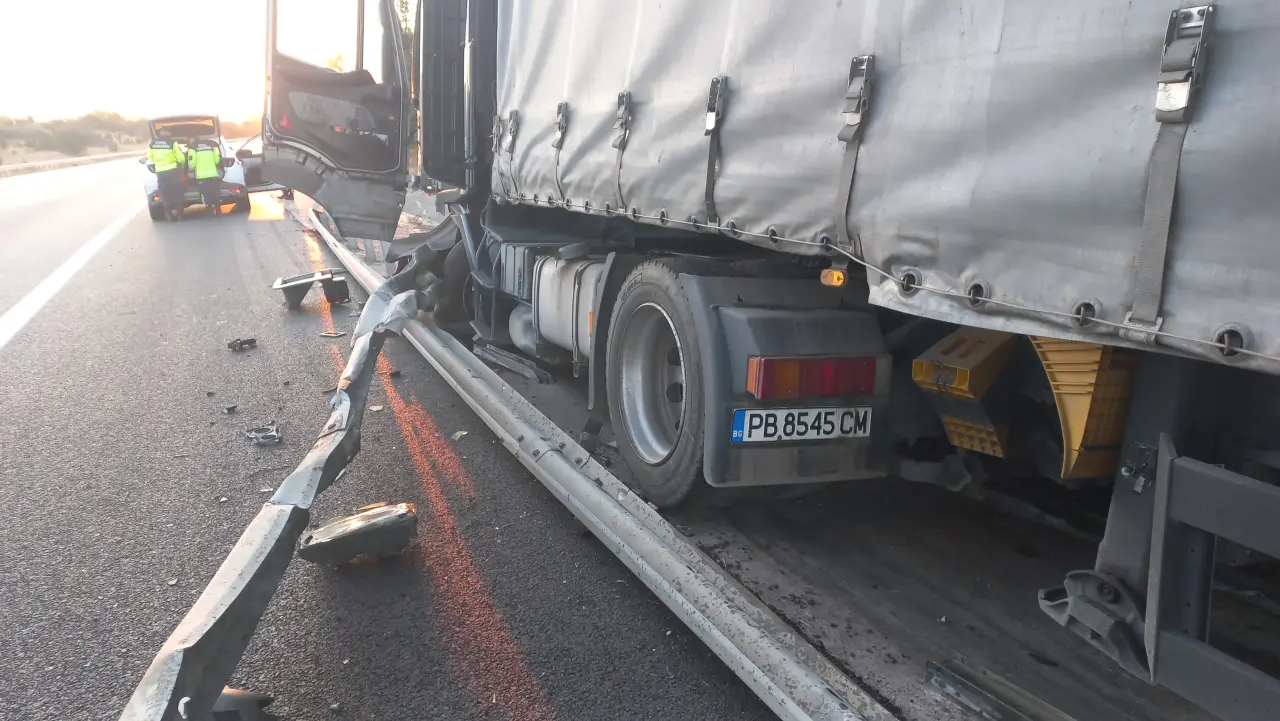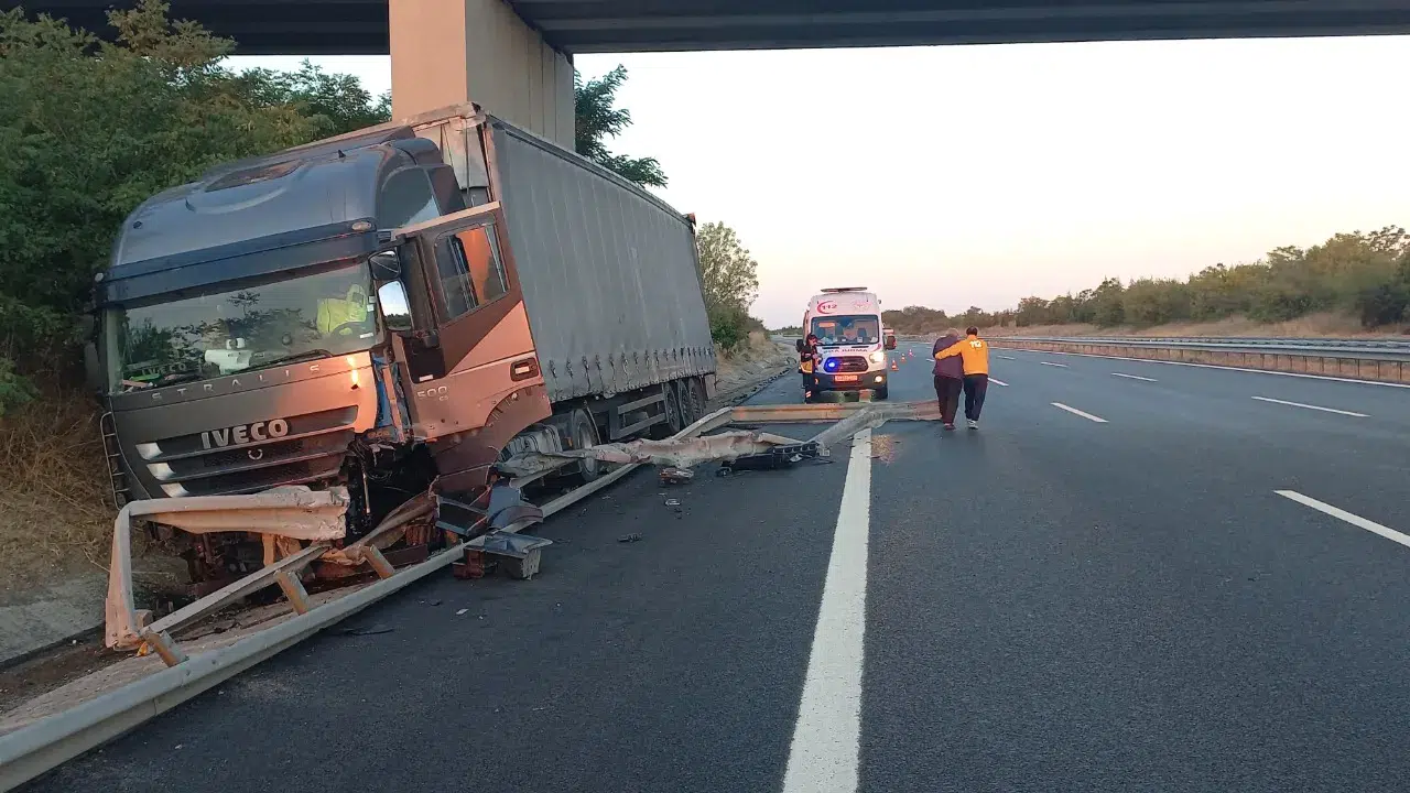 Edirne-İstanbul TEM Otoyolu’nun 62’nci kilometresinde meydana gelen kazada, Bulgaristan plakalı bir tır bariyerlere çarptı.