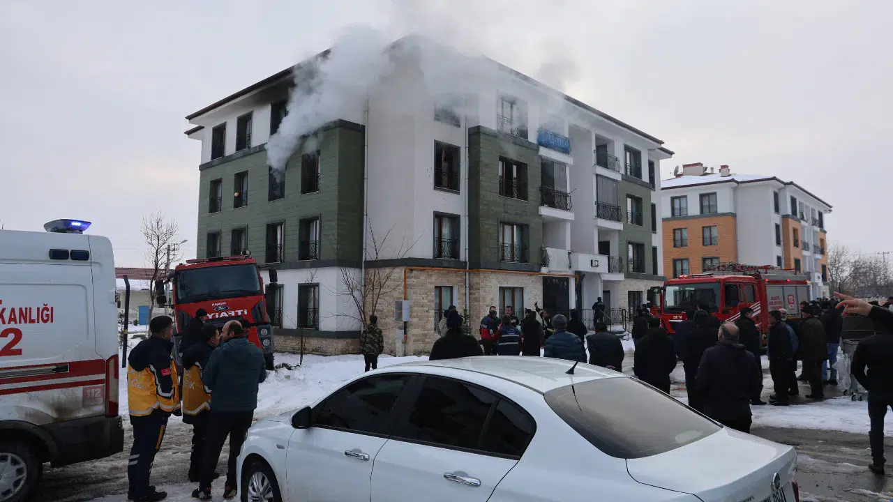 Olay, Yurtbaşı beldesi sosyal konutlarda meydana geldi. Edinilen bilgiye göre 4 katlı binanın 3. katında henüz bilinmeyen bir nedenle yangın çıktı. Yangın kısa büyüdü ve bina dumanlar arasında kaldı. Yangında, 11 kişi dumandan etkilenirken bina sakinleri korku ve panik halinde kendini dışarıya attı.