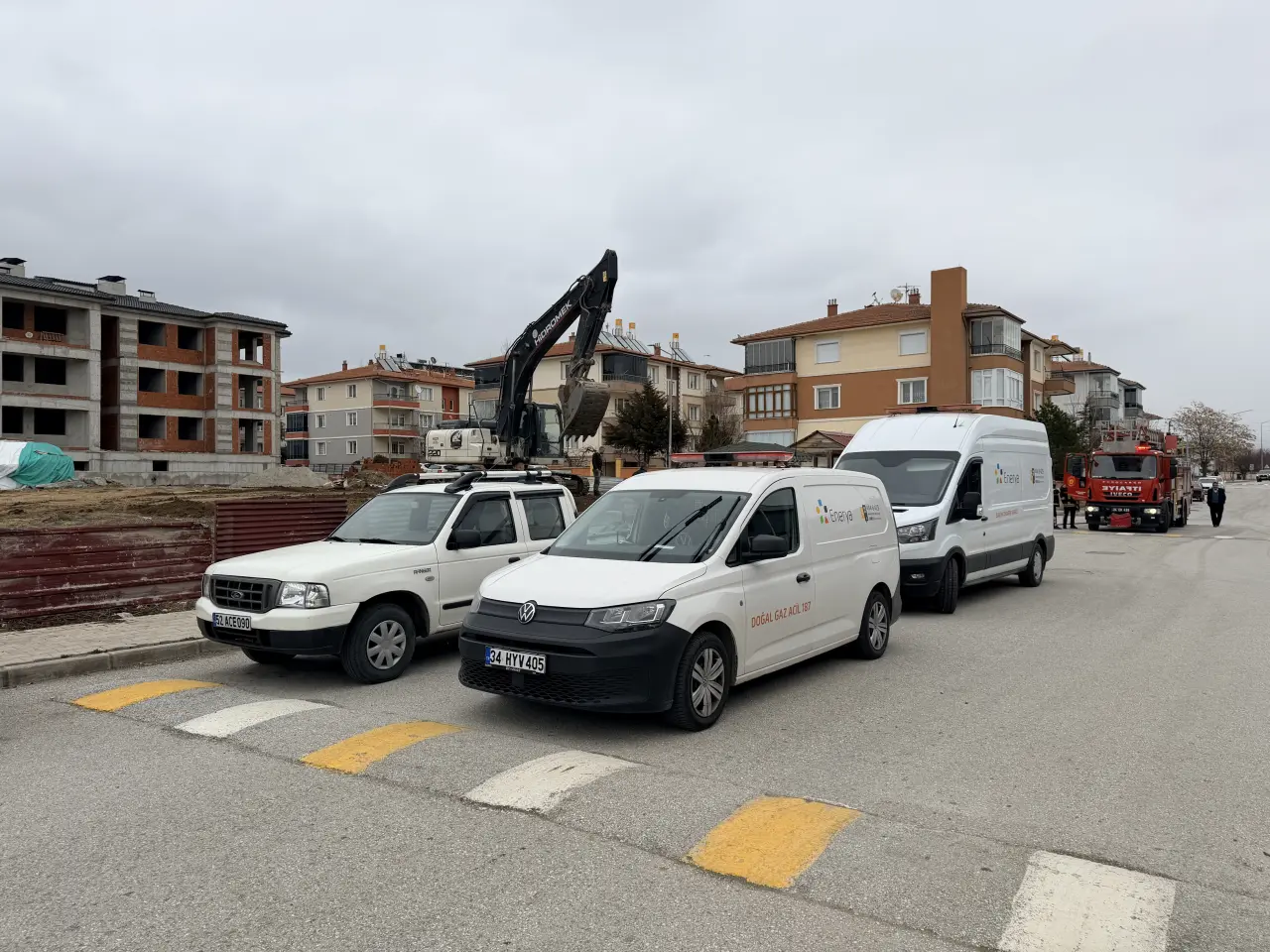 Edinilen bilgilere göre, inşaat sahasında yürütülen kazı çalışmaları sırasında kepçenin yer altındaki doğalgaz hattına zarar vermesi sonucu gaz kaçağı meydana geldi. Olayın fark edilmesinin ardından durum hızla yetkililere bildirildi. İhbar üzerine bölgeye polis ve doğalgaz dağıtım şirketine bağlı teknik ekipler sevk edildi. Polis ekipleri, çevrede geniş güvenlik önlemleri alarak vatandaşları bölgeden uzaklaştırdı. Olası bir patlama riskine karşı inşaat alanı ve çevresi emniyet çemberine alınarak kontrollü şekilde güvenlik sağlandı.