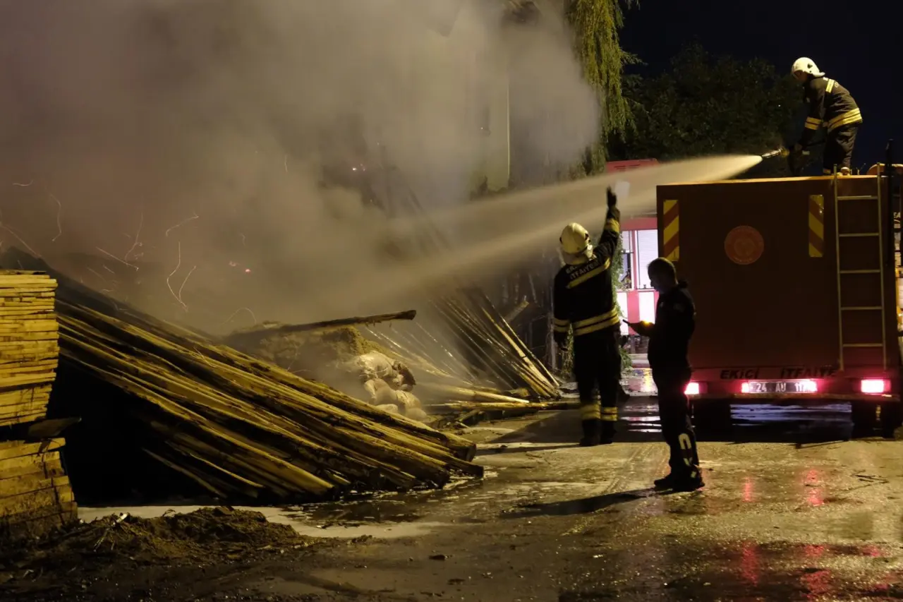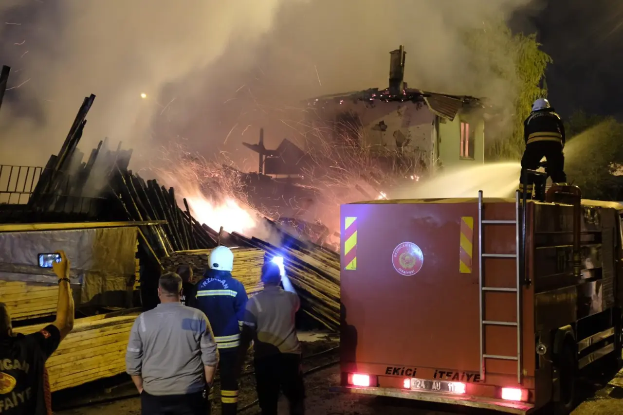 Erzincan Karaağaç Mahallesindeki Keresteciler Sitesi'nde İbrahim C’ye ait imalathanede belirlenemeyen nedenle yangın çıktı. Bölgeye çok sayıda itfaiye, polis ve sağlık ekibi sevk edildi. Kısa sürede büyüyen alevlere 7 itfaiye aracı, 2 tanker ve 30 personelle müdahale edildi.