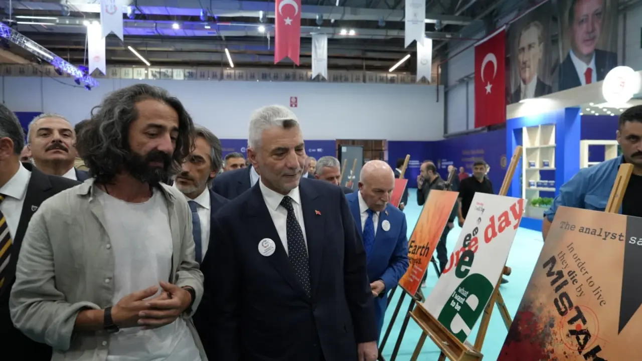 Fuar alanı ile Filistin Konulu "Zafer Bizimdir" ve "Kooperatifçiliğin Alfabesi" afiş tasarım sergilerini beraberindeki protokol ile gezen Bakan Prof. Dr. Ömer Bolat, stantlar hakkında ilgililerinden bilgi aldı.