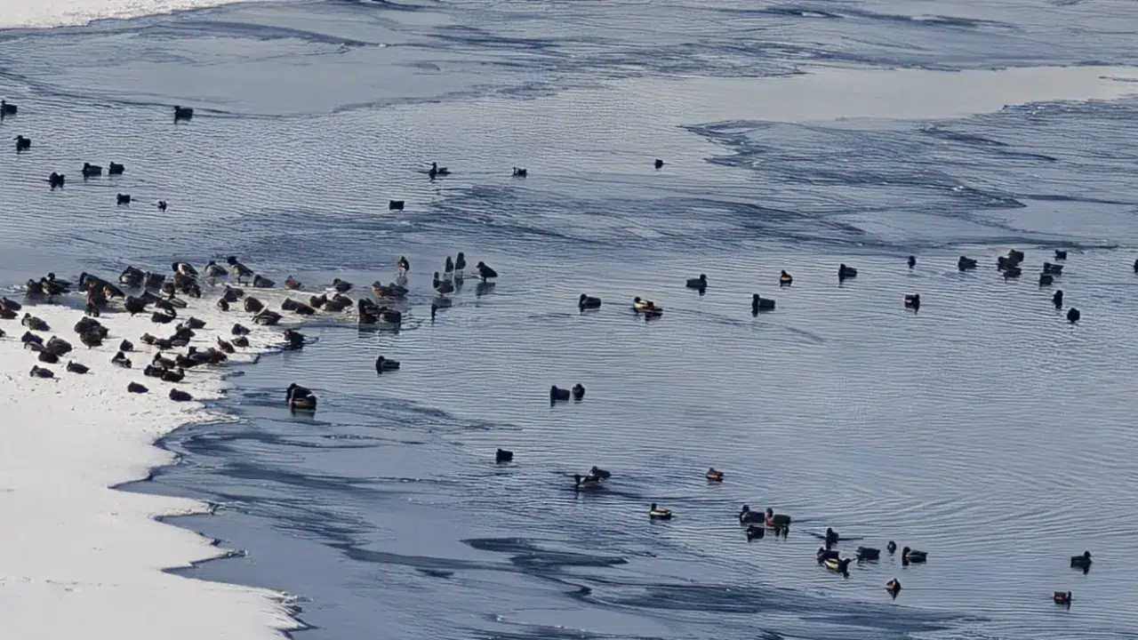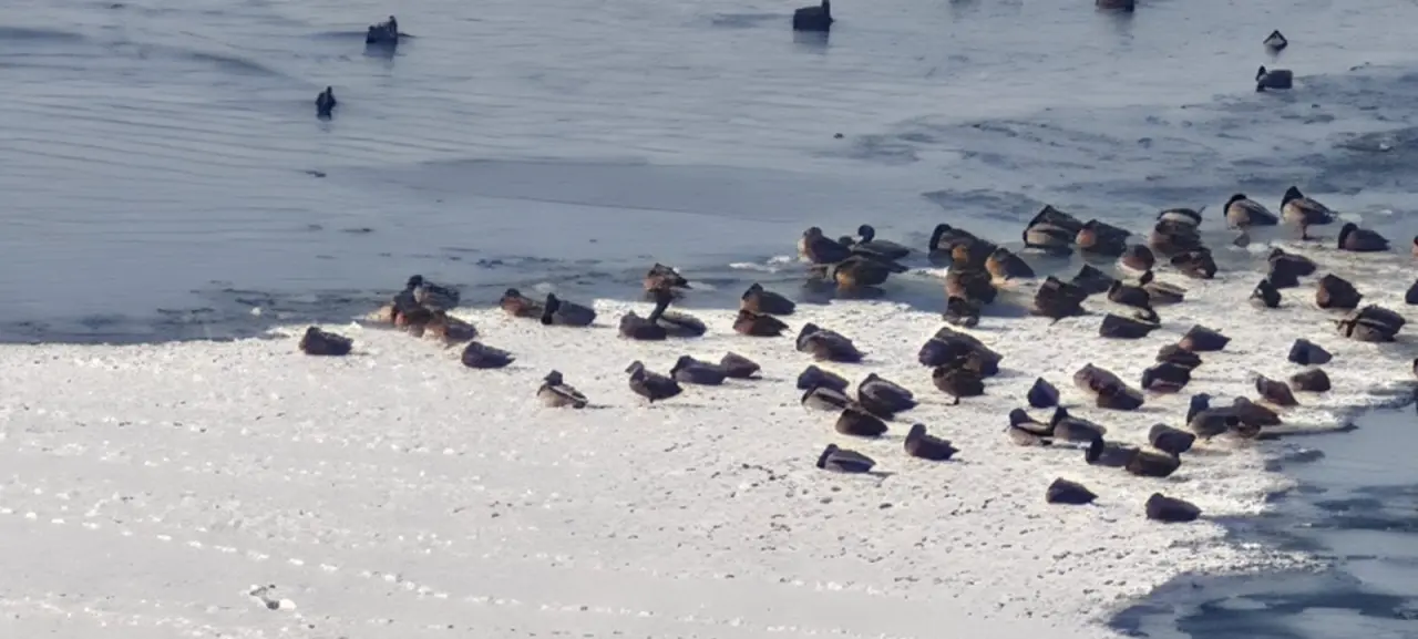 Erzurum Aşkale'de göçmen kuşların önemli uğrak ve konaklama alanlarından biri olan HES Göleti aşırı soğuk nedeniyle donarken, kuşlar yaşamlarını sürdürebilmek için gölete akan suyun oluşturduğu küçük buzsuz alanlarda yiyecek arıyor. Zor şartlara rağmen hayatta kalmaya çalışan kuşların bu mücadelesi, soğuk havanın yaban hayatı üzerindeki etkisini gözler önüne serdi.