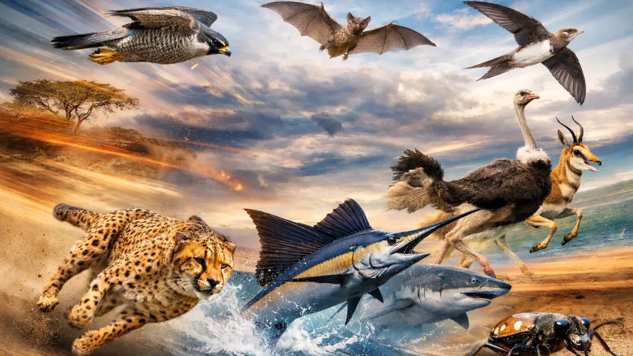 Çita, karada yaşayan canlılar arasında hız rekorunu elinde tutuyor. Kısa mesafeli sprintlerde 110–120 km/s hıza ulaşabiliyor. Esnek omurgası, güçlü arka bacakları ve yarı geri çekilebilir pençeleri, bu patlayıcı hızın temelini oluşturuyor; ancak bu performansı yalnızca birkaç yüz metre sürdürebiliyor.