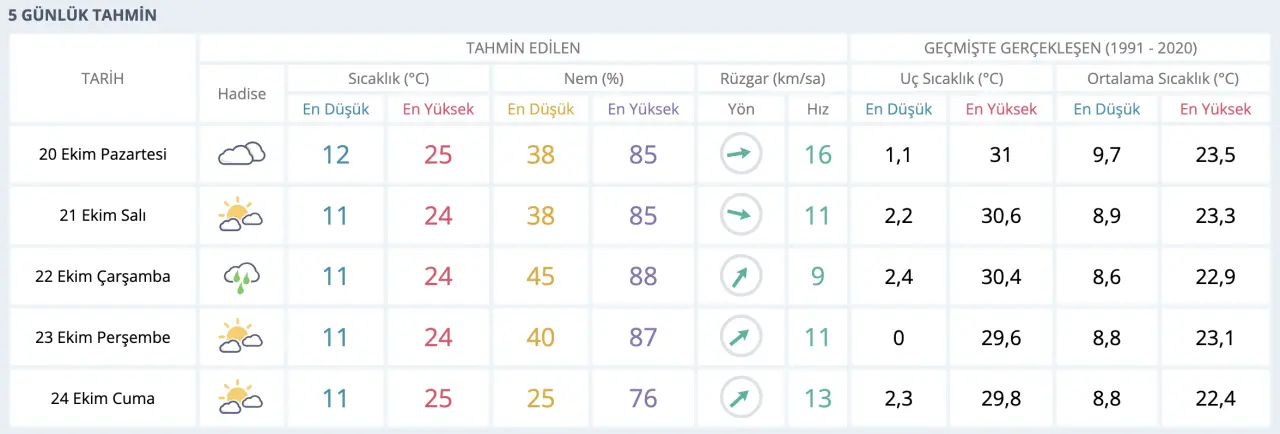 5 GÜNLÜK HAVA DURUMU ÖZETİ: