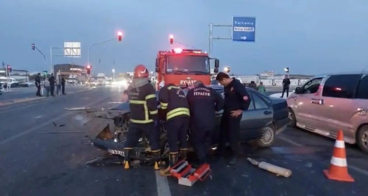Gaziantep'in Nizip ilçesinde 5 araç çarpıştı. Kaza, ilçeye bağlı D400 karayolu Karkamış kavşağında meydana geldi. İddiaya göre, İ.K. (32) kontrolündeki 27 AJU 460 plakalı otomobil, kavşakta kırmızı ışıkta bekleyen 01 AOH 49, 02 ADJ 506, 33 NEL 79 ve 27 NE 2527 plakalı araçlara arkadan çarptı.