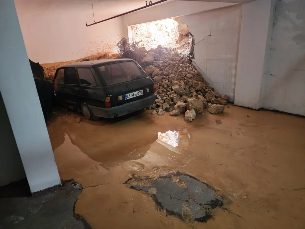 Mahalledeki 7 katlı bir binanın zemin katının duvarı, şiddetli yağmur sırasında yıkıldı. Duvarın yıkılması sonucu binanın zemin katını su ve çamur bastı. Duvarın yıkılmasıyla birlikte binanın üst tarafında bulunan yol da kısmen çöktü. Binanın zemin katında bulunan otomobille motosiklet çamur içinde kaldı.