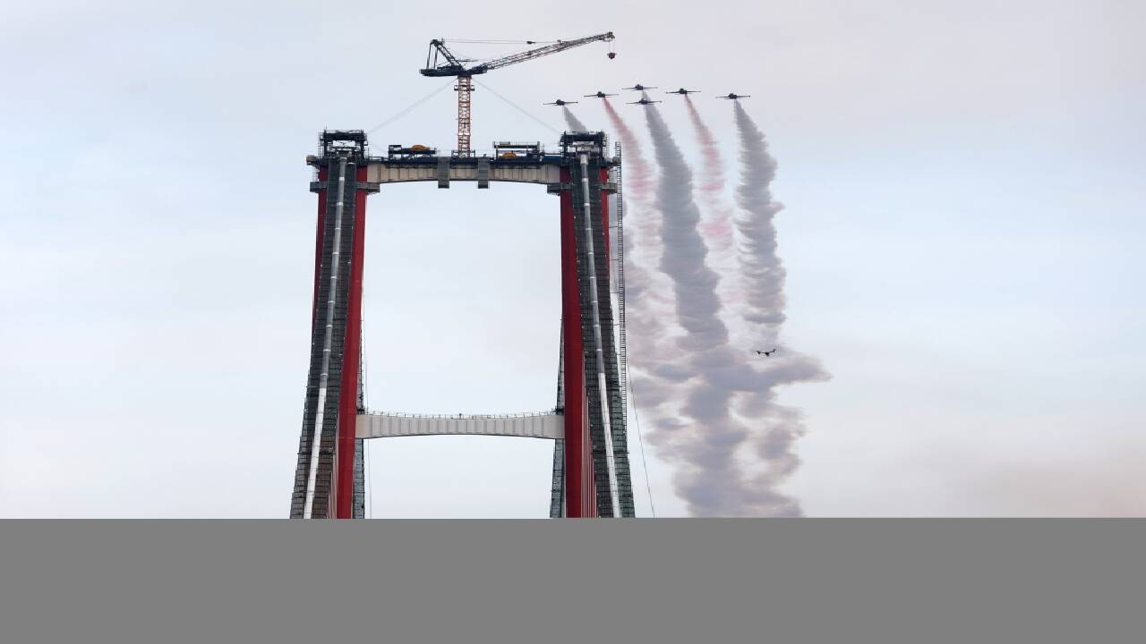 Hiç şüphesiz sadece bu köprüden bahsetmediğine dikkati çeken Erdoğan, "Karşımızda İstanbul'u Tekirdağ'a ve Çanakkale üzerinden Balıkesir'e bağlayacak dev bir ulaşım projesi var. Bugün köprüyle birlikte Malkara'dan Çanakkale'ye kadar uzanan 101 kilometrelik otoyolun da açılışını gerçekleştiriyoruz. İş bilenin, kılıç kuşananındır. Türkiye'nin en yoğun araç güzergahlarından birisi olan bu yolda Lapseki Gelibolu arasında feribotlarla ulaşım sağlanıyordu. Burası saatlerce feribot sırası beklenen, ardından 1,5 saatlik bir yolculukla karşıya geçilebilen bir yerdi. Şimdi aynı yolculuk 1915 Çanakkale Köprüsü üzerinden sadece 6 dakikada tamamlanacak. Nereden nereye." dedi.