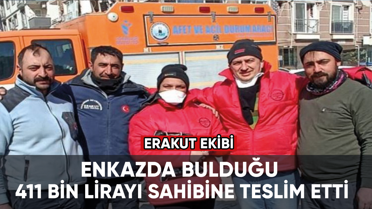 Hatay’da görev yapan Erzurum Büyükşehir Belediyesi’ne bağlı Arama ve Kurtarma (ERAKUT) ekibi, enkazda bulduğu 411 bin 120 TL’yi sahibine teslim etti.
